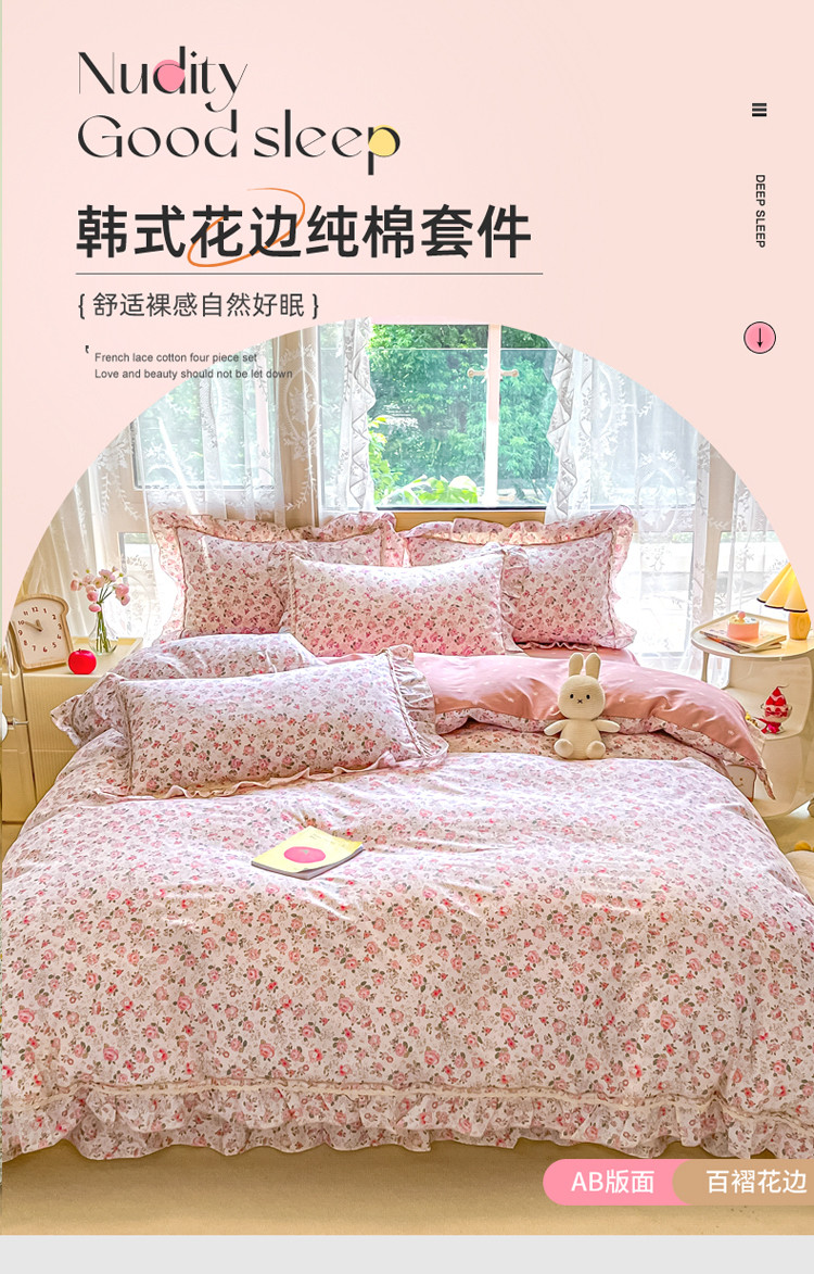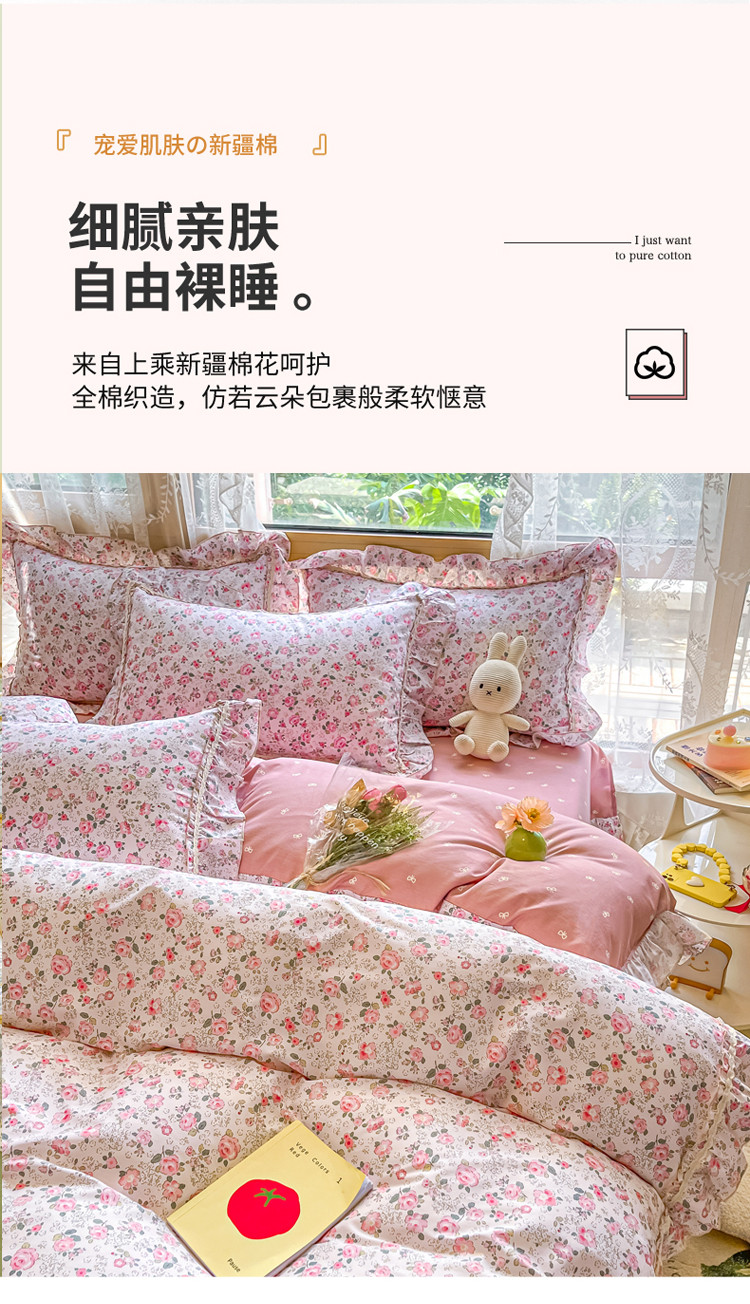 (总)艾唯希2025新款全棉小香风工艺四件套纯棉小花边碎花被套韩式公主风,初朵,春漾,漫丁蔷薇,觅秋,密玲花语,慕归十里,小青藤-米,小樱-咖,雅集,雅蔓花语,樱花,悠然雅居-粉