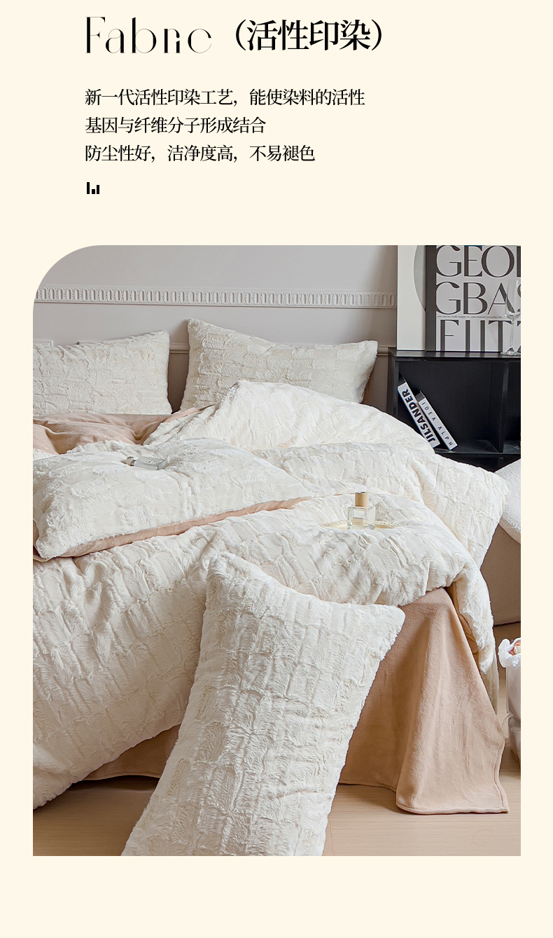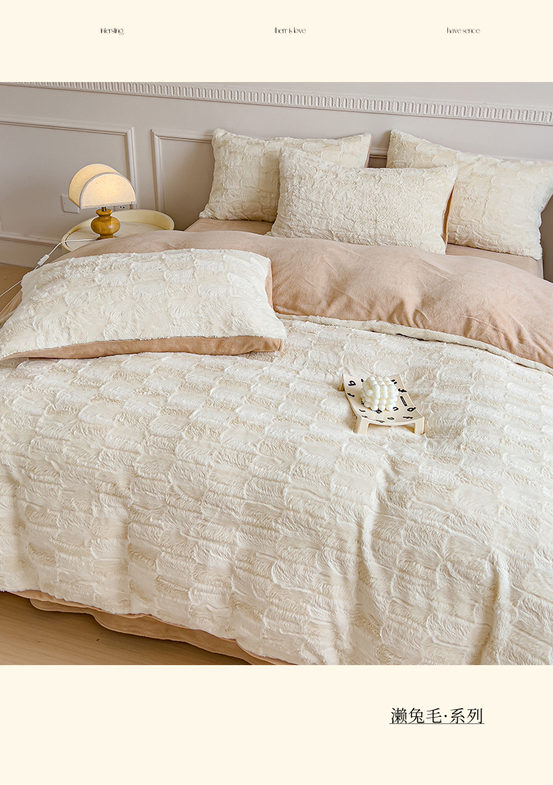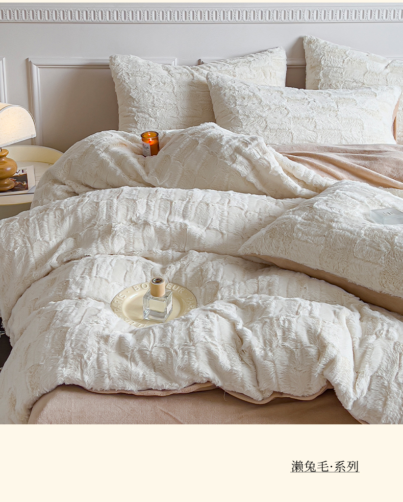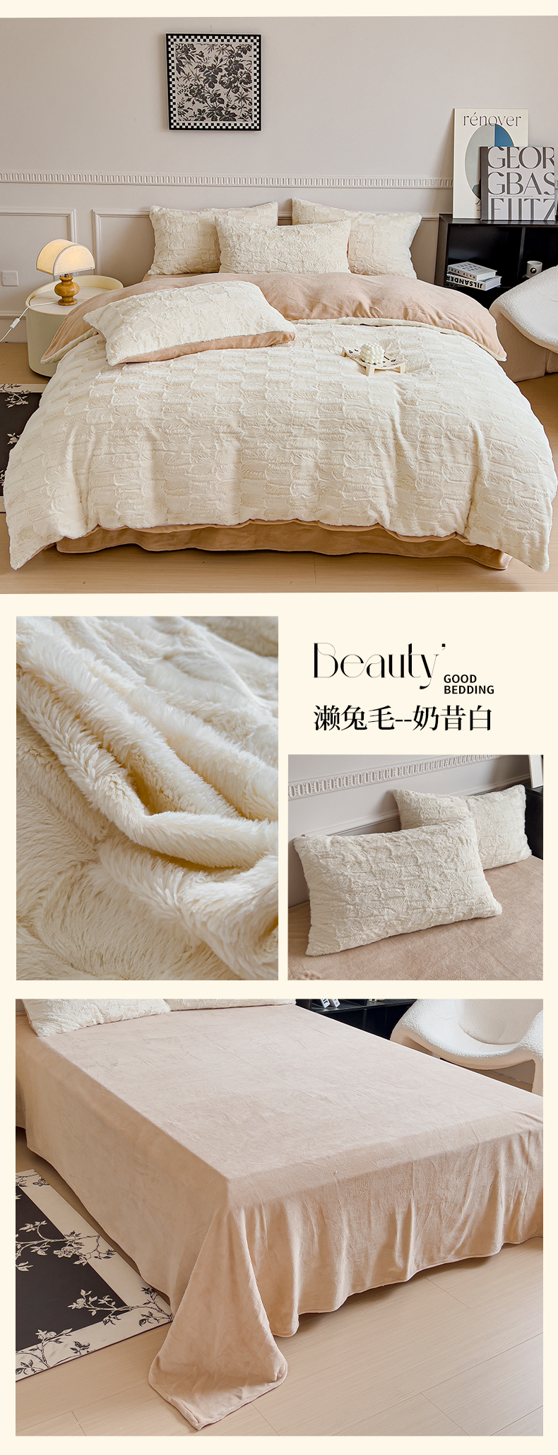 商品名称:木堇 2023新款兔毛绒牛奶绒四件套 濑兔毛--奶昔白