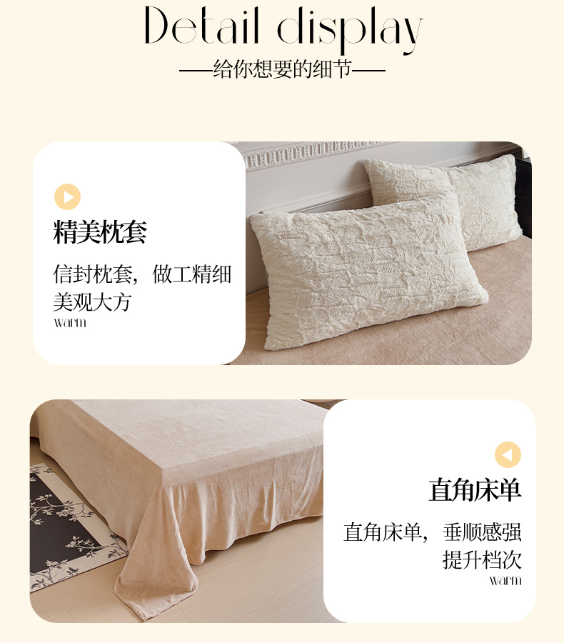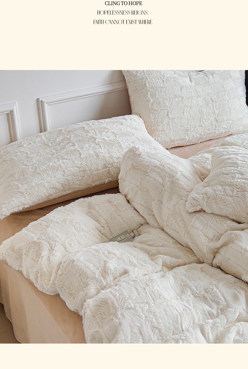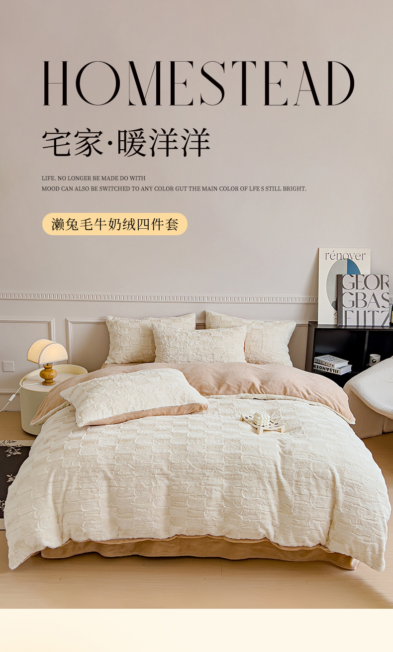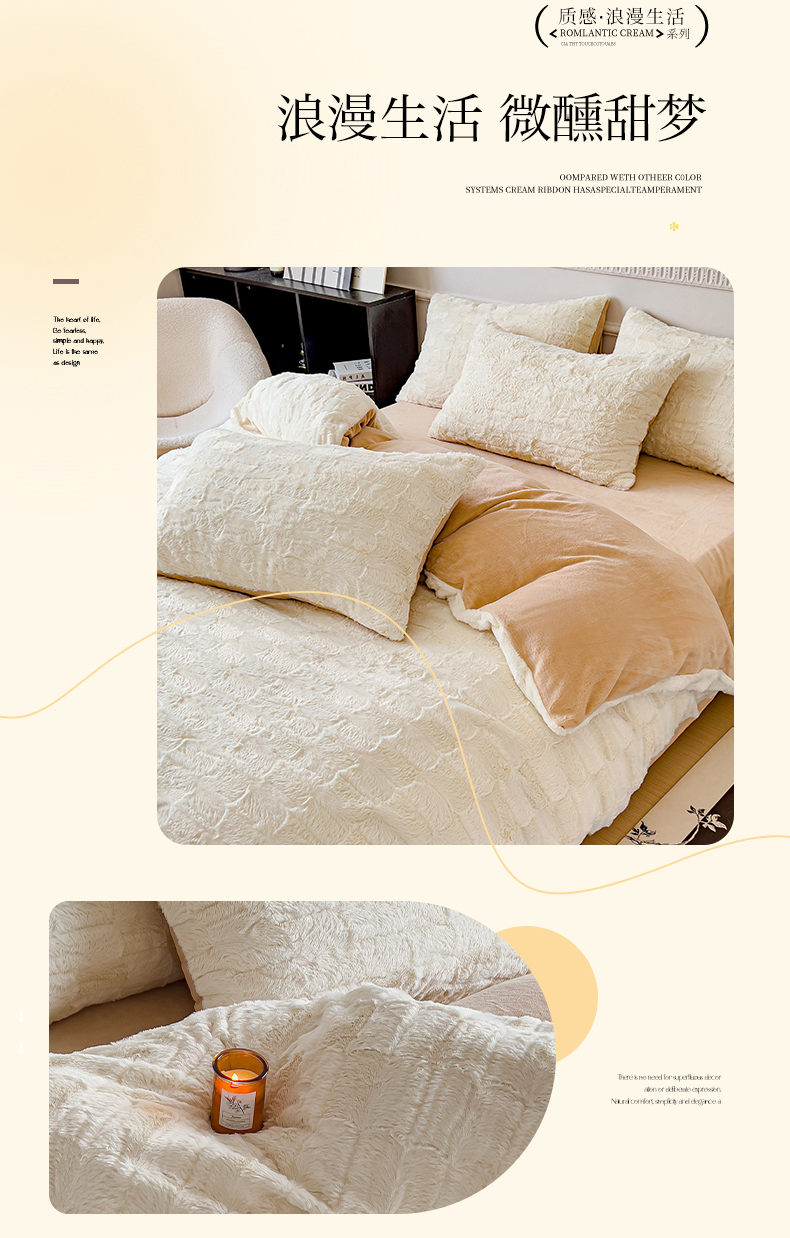 商品名称:木堇 2023新款兔毛绒牛奶绒四件套 濑兔毛--奶昔白