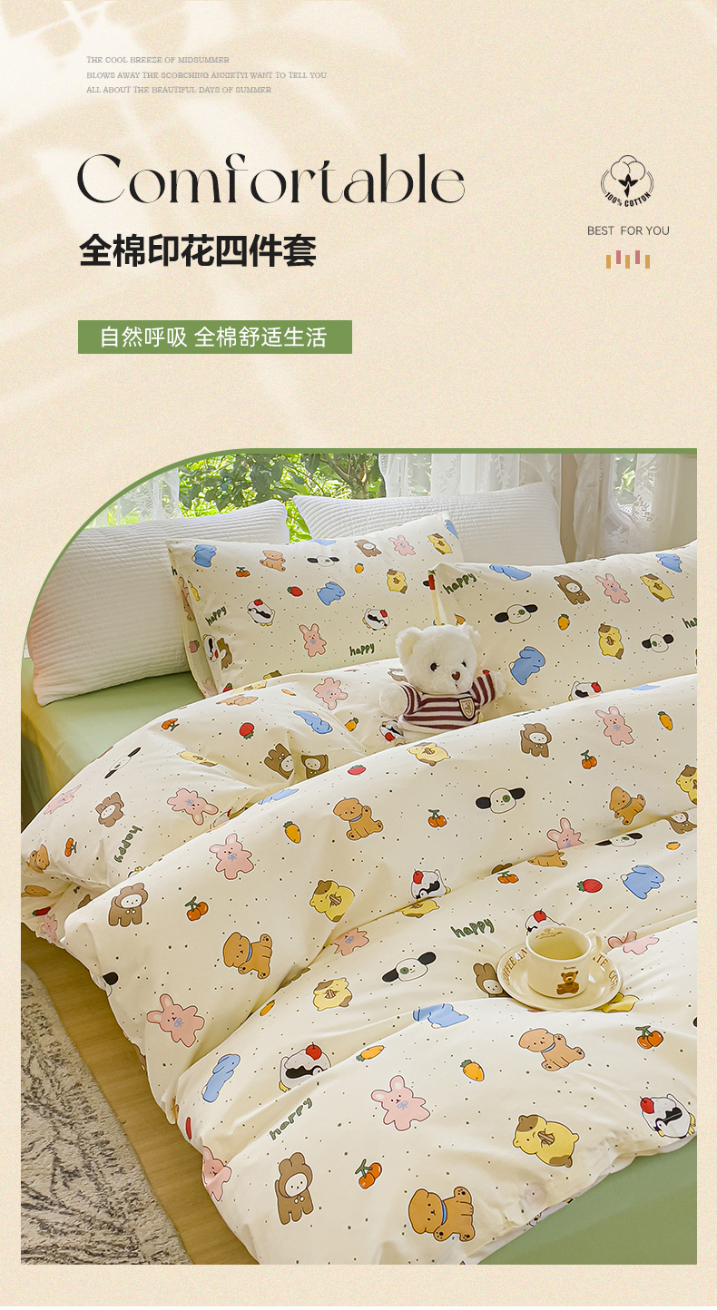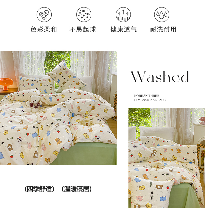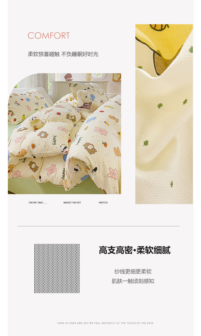 (总)感遇家纺 2021新款小清新卡通系列四件套,饼干森林,快乐星球,长颈鹿