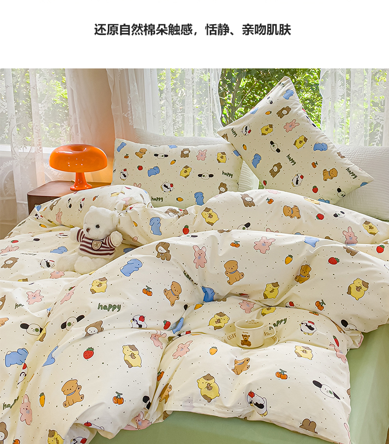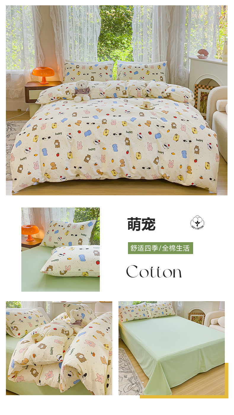商品名称:感遇家纺 2023新款全棉印花四件套 萌宠
