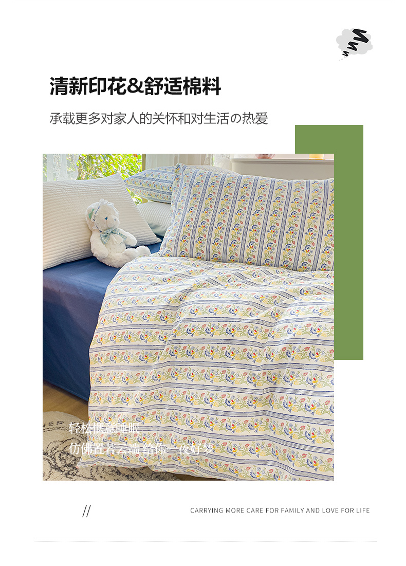(总)感遇家纺 2025新款小清新甜系全棉四件套,百丽兔,波点小女孩,点点小狗,复古樱桃,格子草莓,格子樱桃,花间牧歌,灰条猫咪,奶绿,宁夏,森林小熊猫,甜心波点