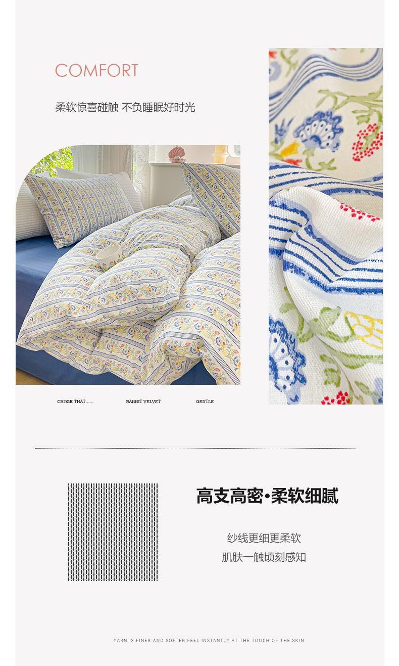 (总)感遇家纺2025新款全棉双层纱纤柔四件套,格子爱心蓝,花开半夏,滑板小狗,七彩虹,少女甜心,晚香玉,小美好,心心相印,樱桃,叠拍图仅供参考