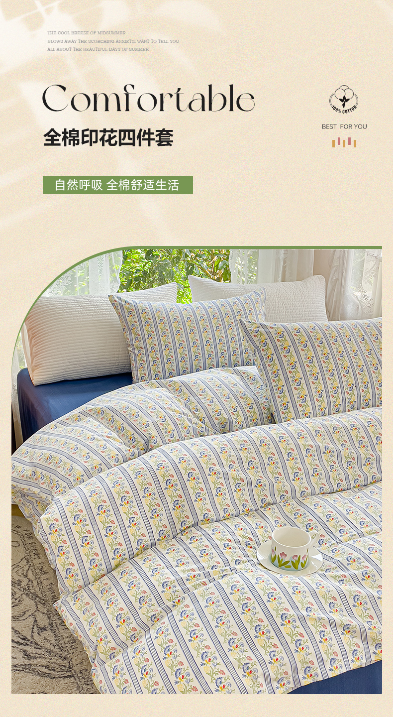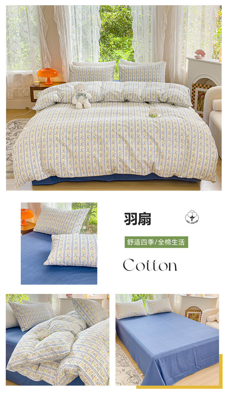 商品名称:感遇家纺 2023新款全棉印花四件套 羽扇