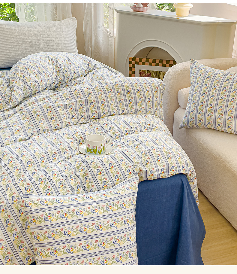 (总)感遇家纺 2022新款全棉印花四件套,格子小花,黑格恐龙,蓝色心情,浅暖