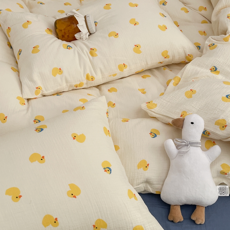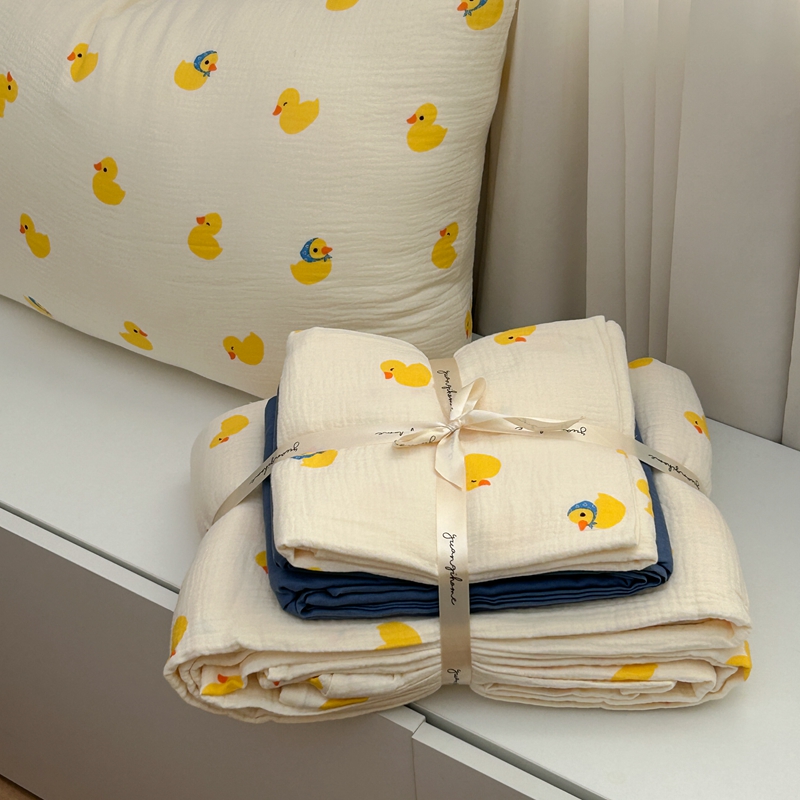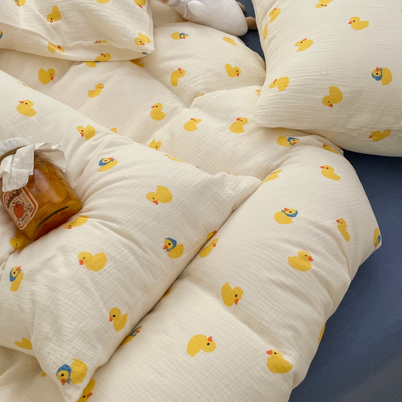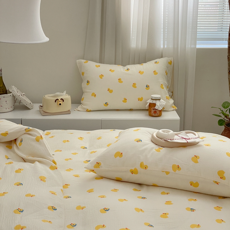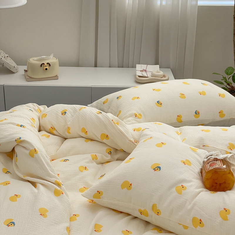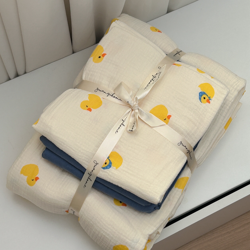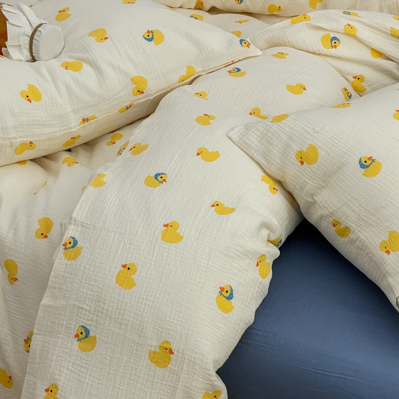 源启生活 2023全棉皱皱纱四件套 小黄鸭