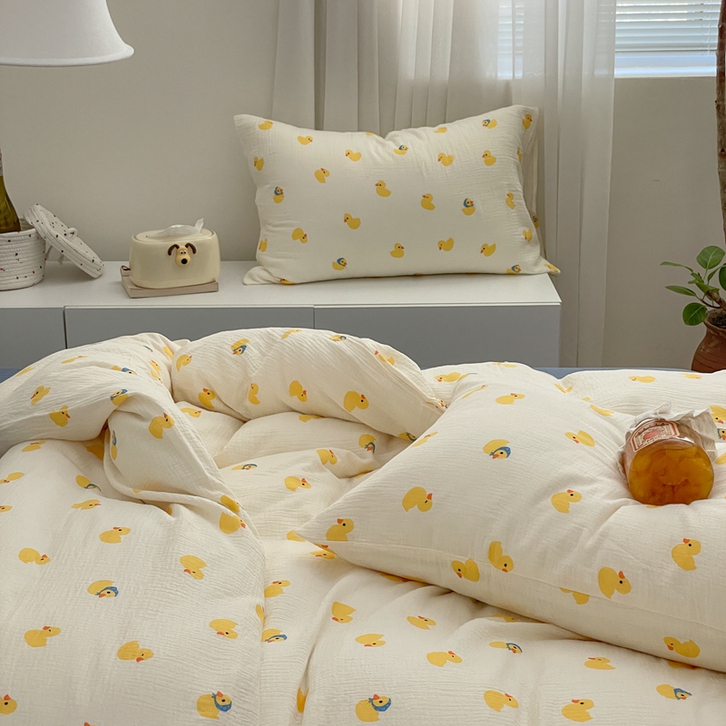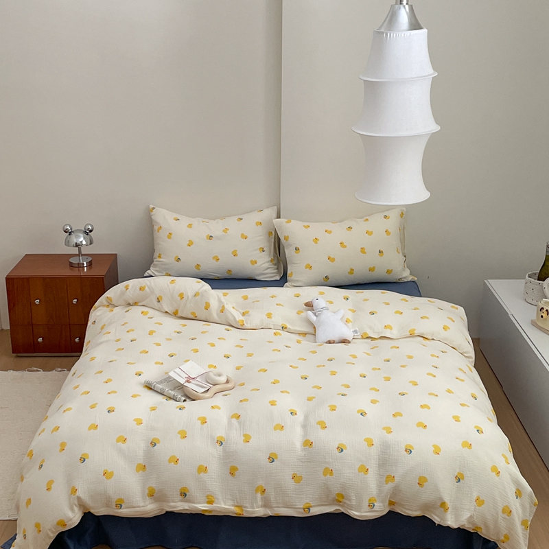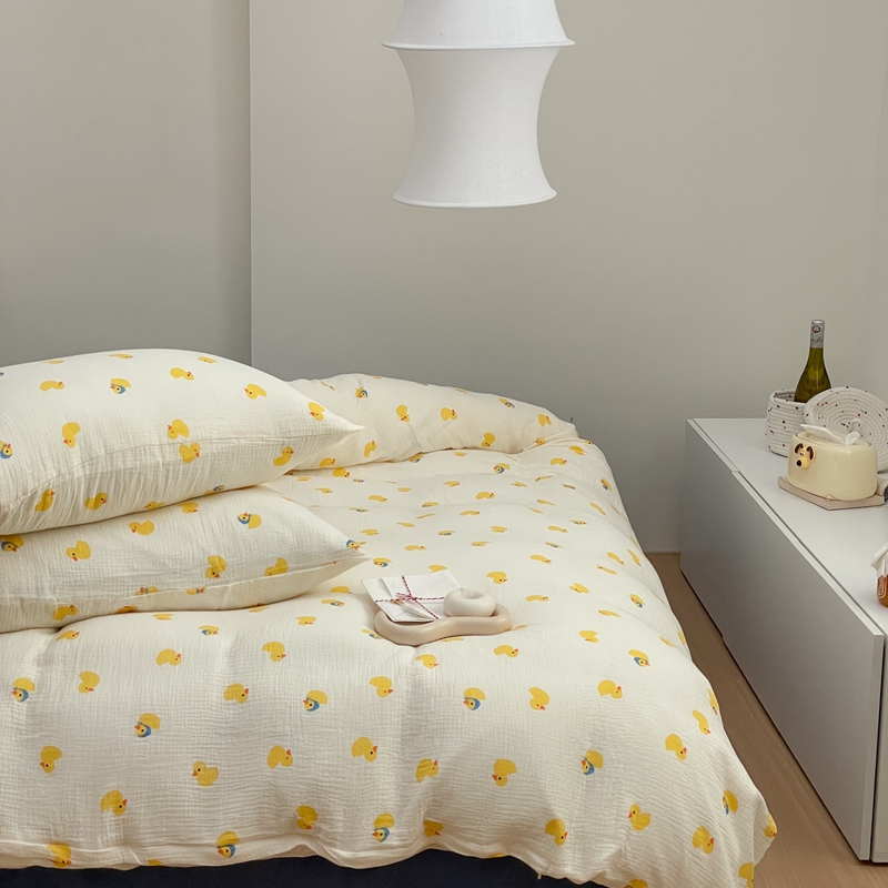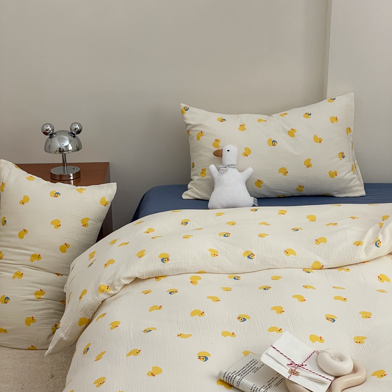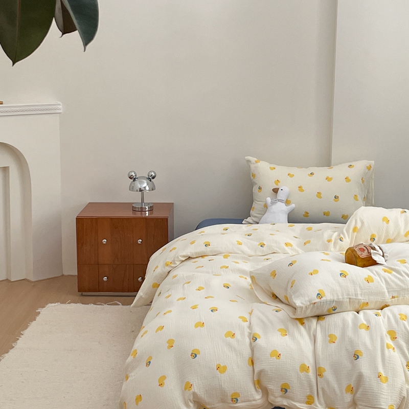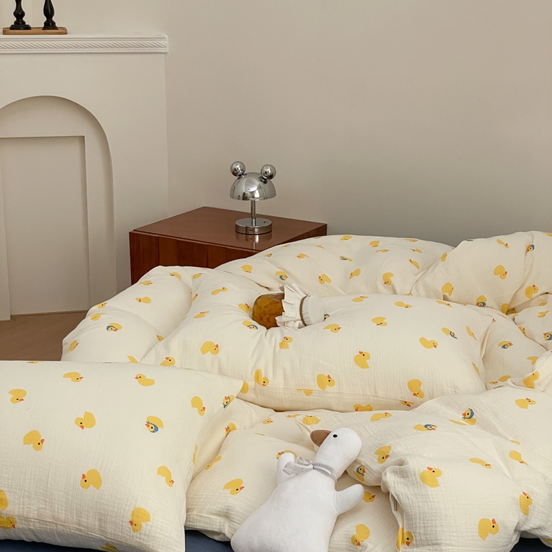 源启生活 2023全棉皱皱纱四件套 小黄鸭