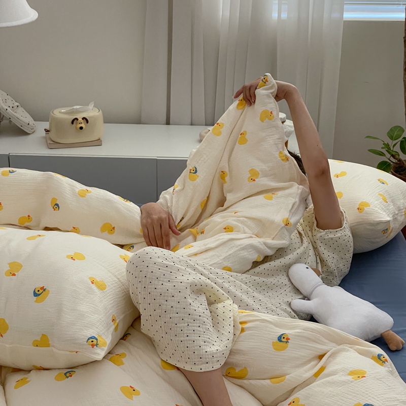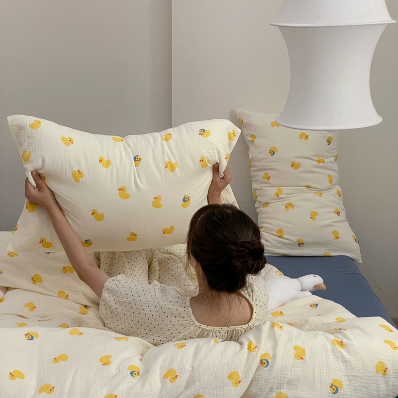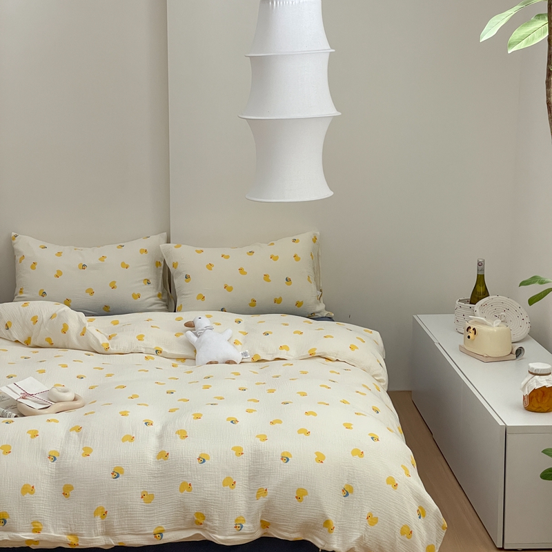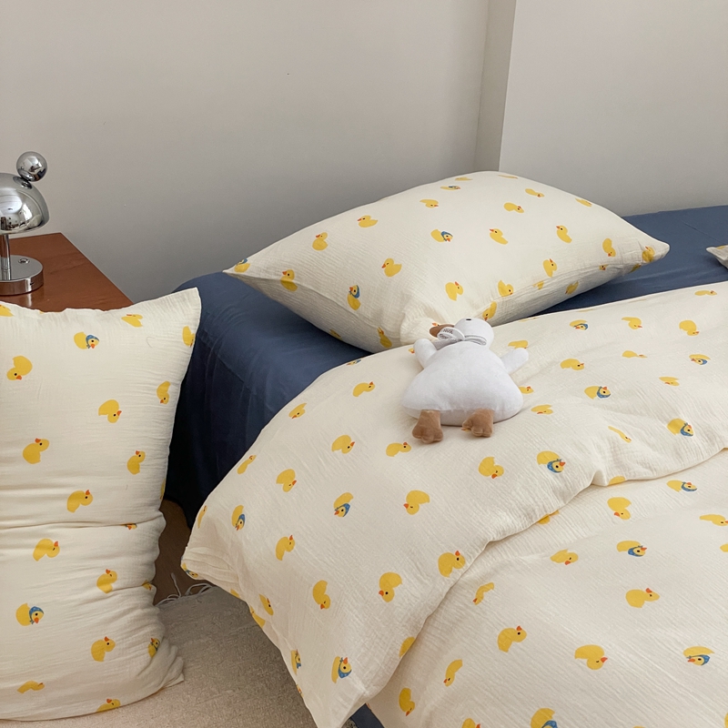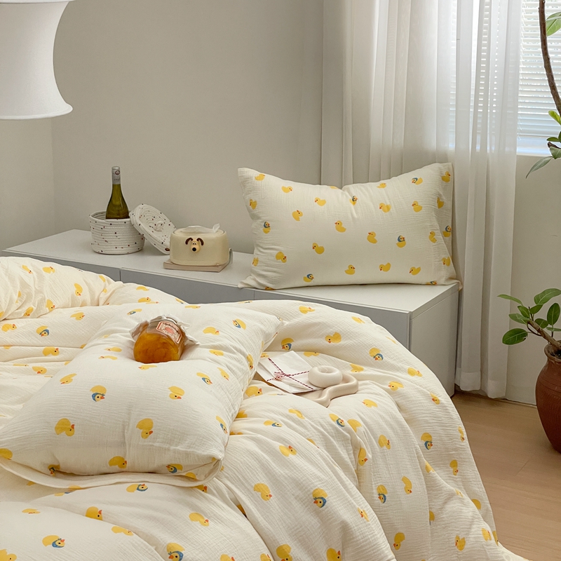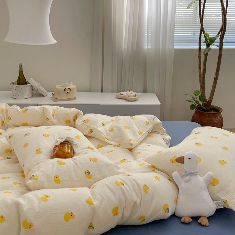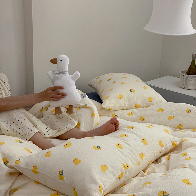 源启生活 2023全棉皱皱纱四件套 小黄鸭