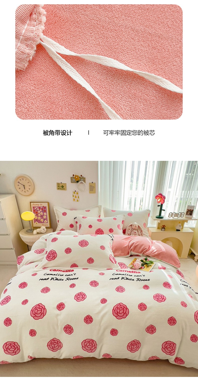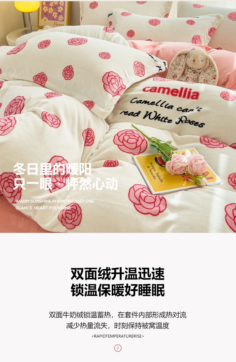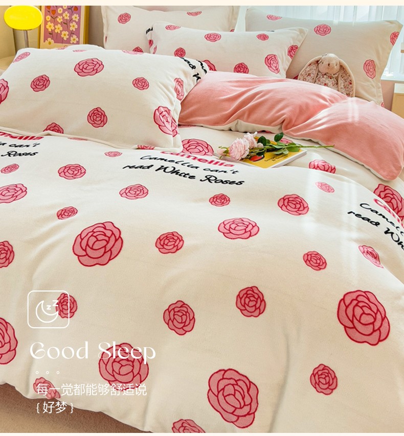 商品名称:全季家居 2023新款小清新A类高克重加厚印花牛奶绒被套单件 山茶花