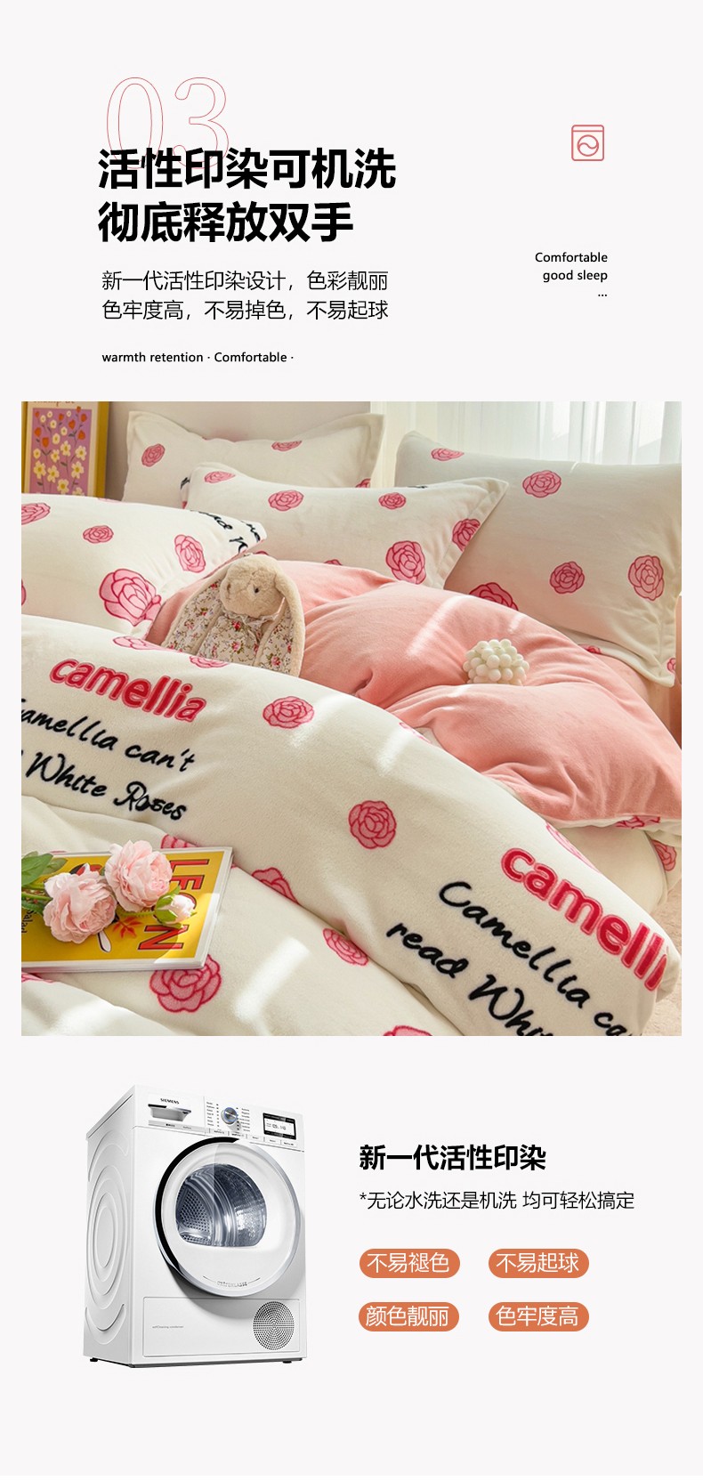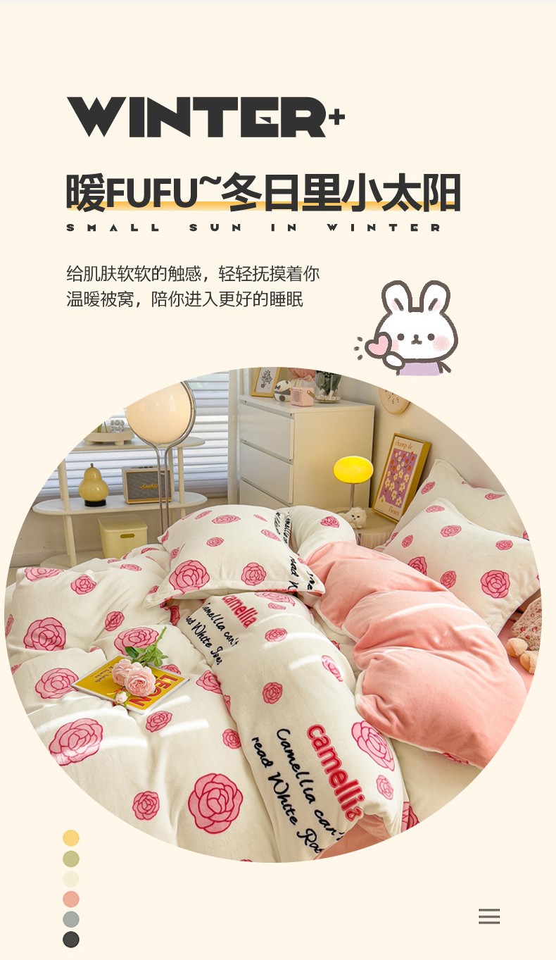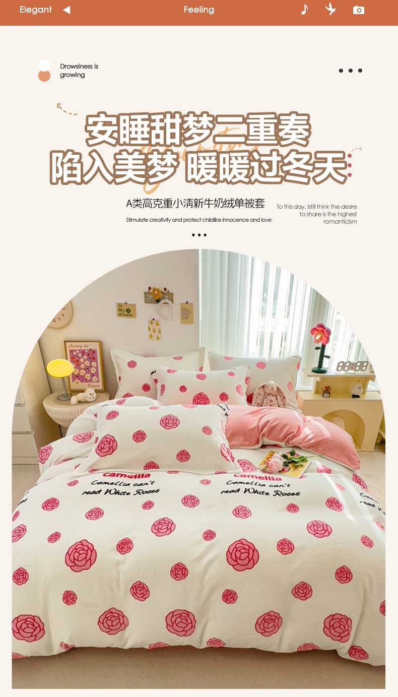 商品名称:全季家居 2023新款小清新A类高克重加厚印花牛奶绒被套单件 山茶花