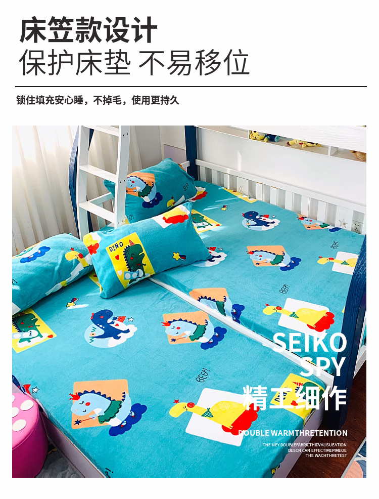 • 91家纺网 家纺一手货源 找家纺 小虾米 2023新款上下床加厚牛奶绒床笠 恐龙世界