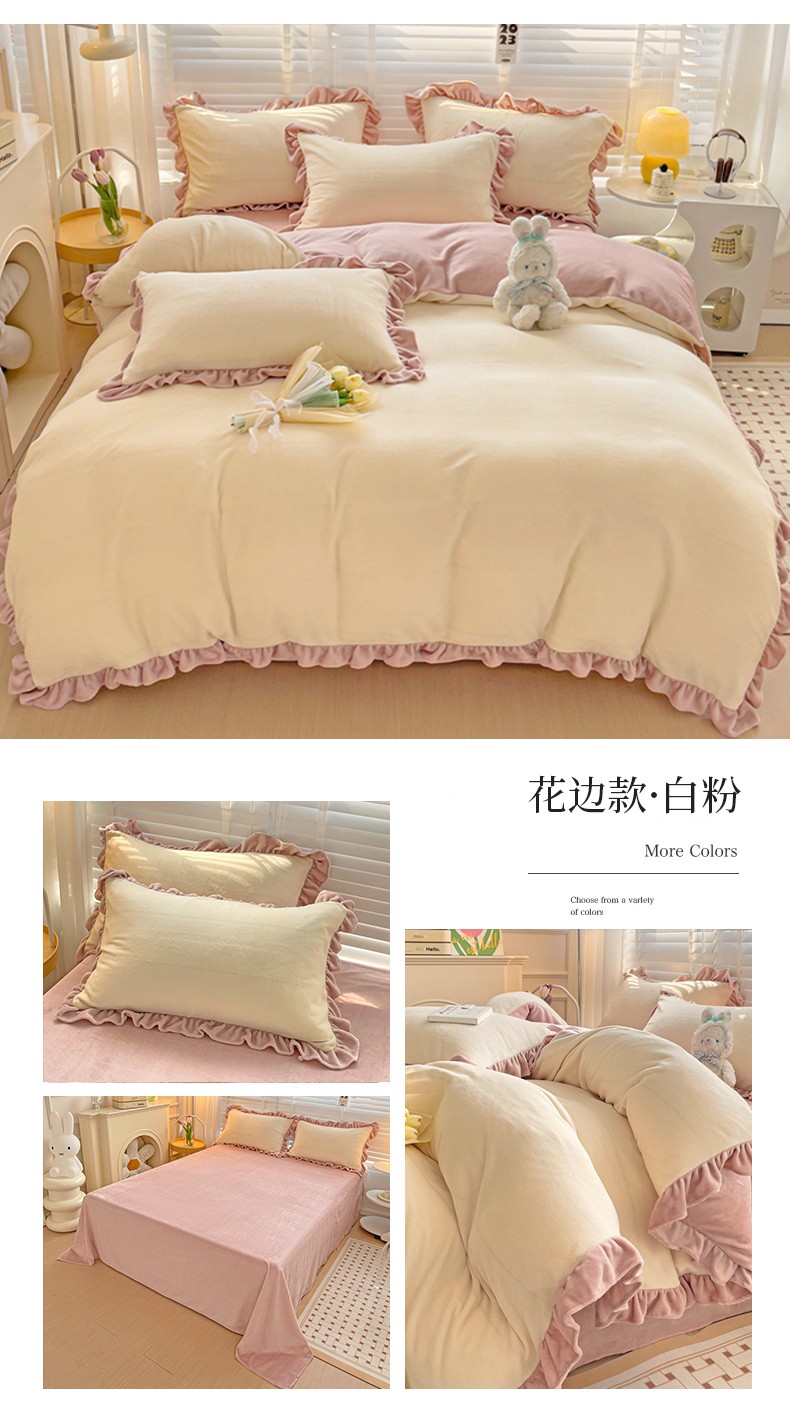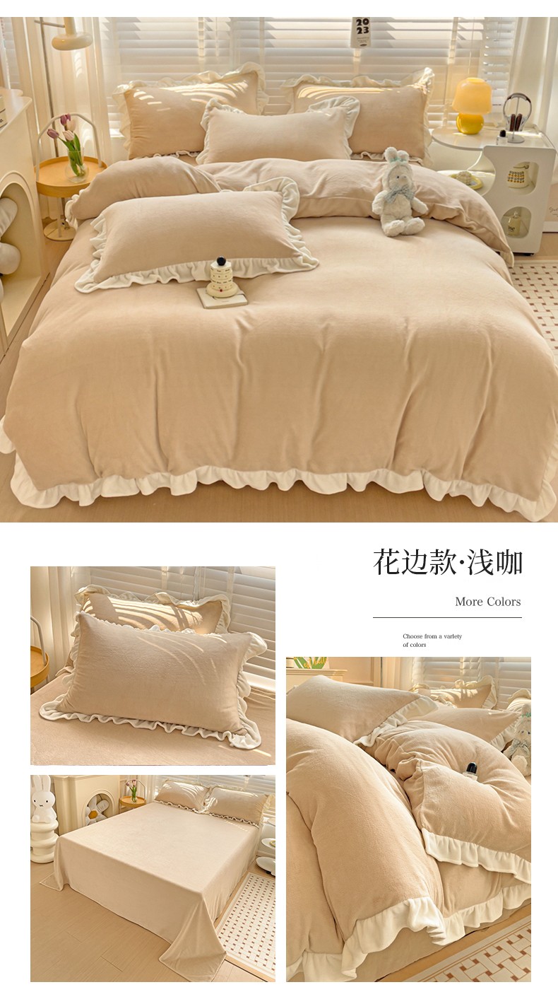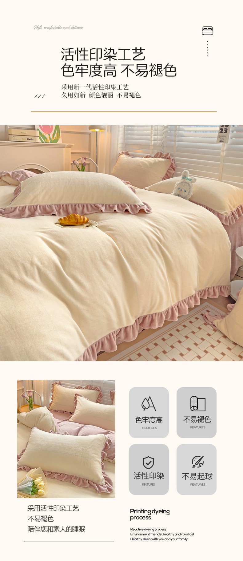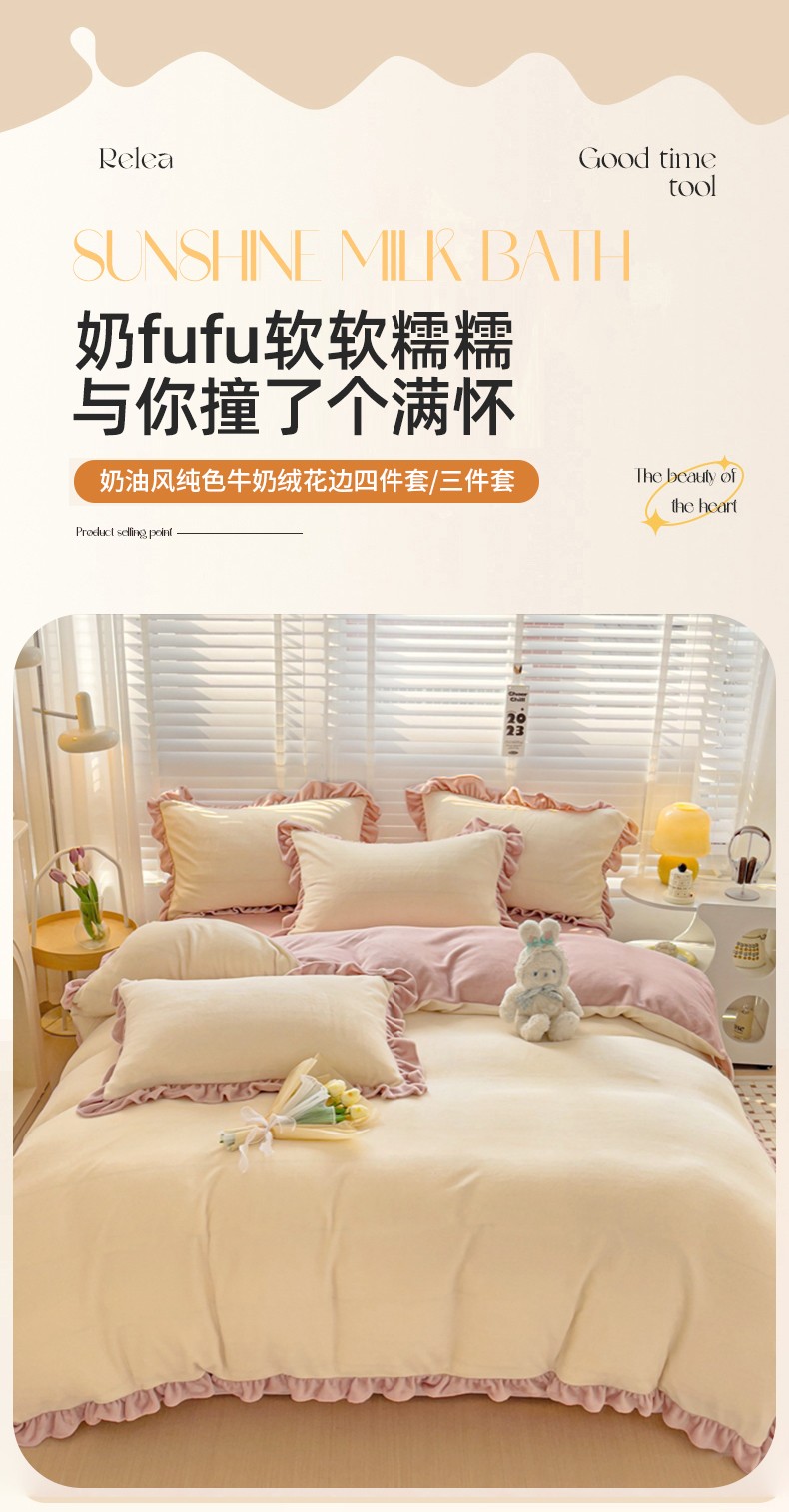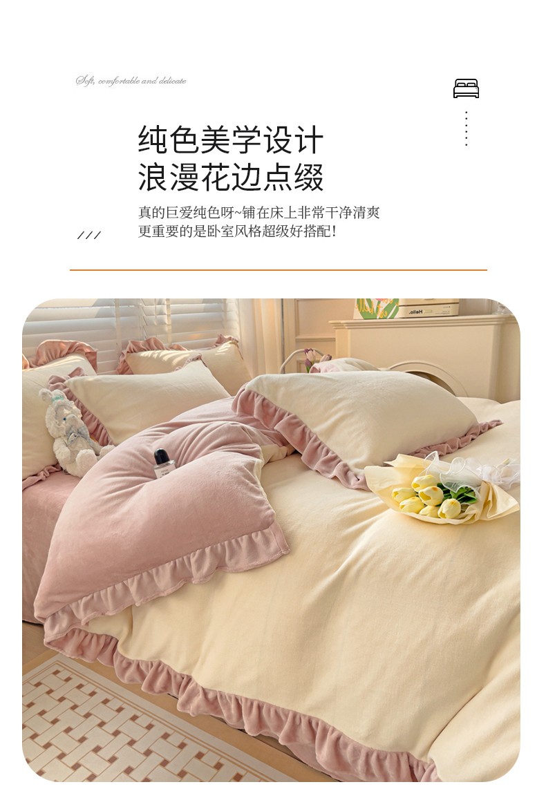 (总)艾咪 新款花边款奶油风纯色牛奶绒四件套三件套