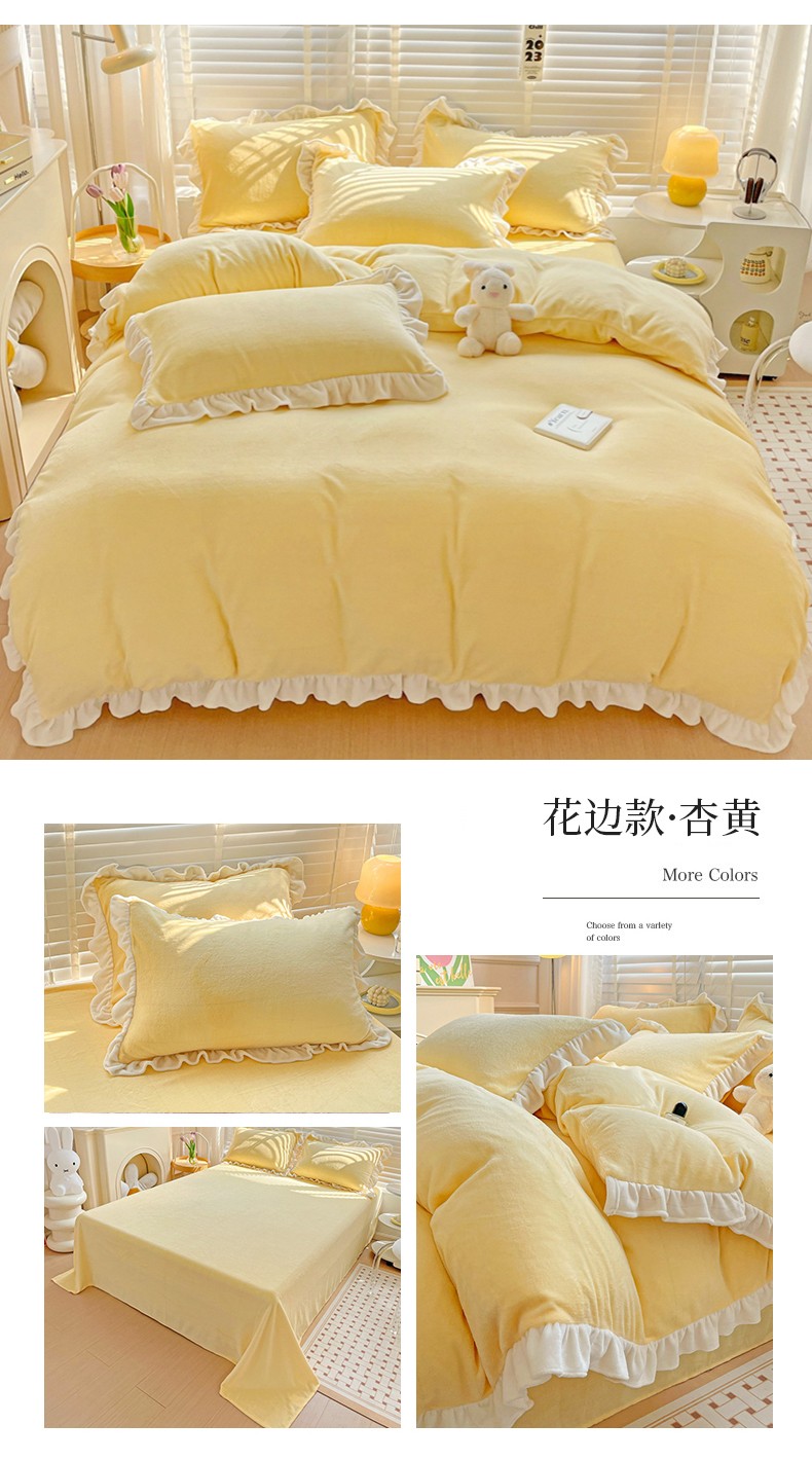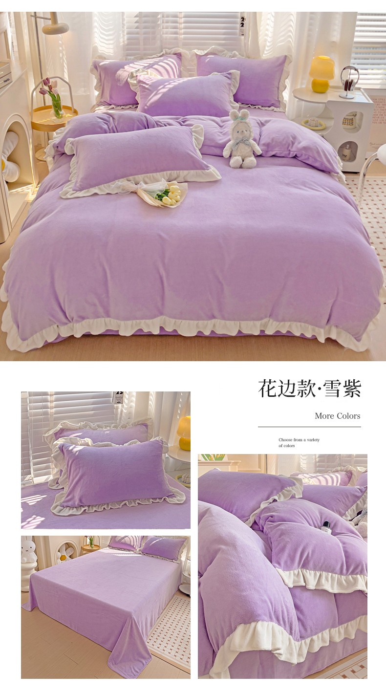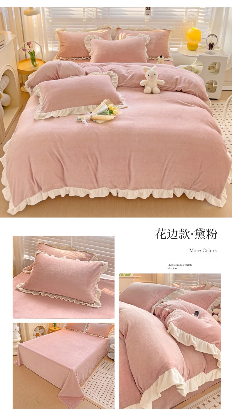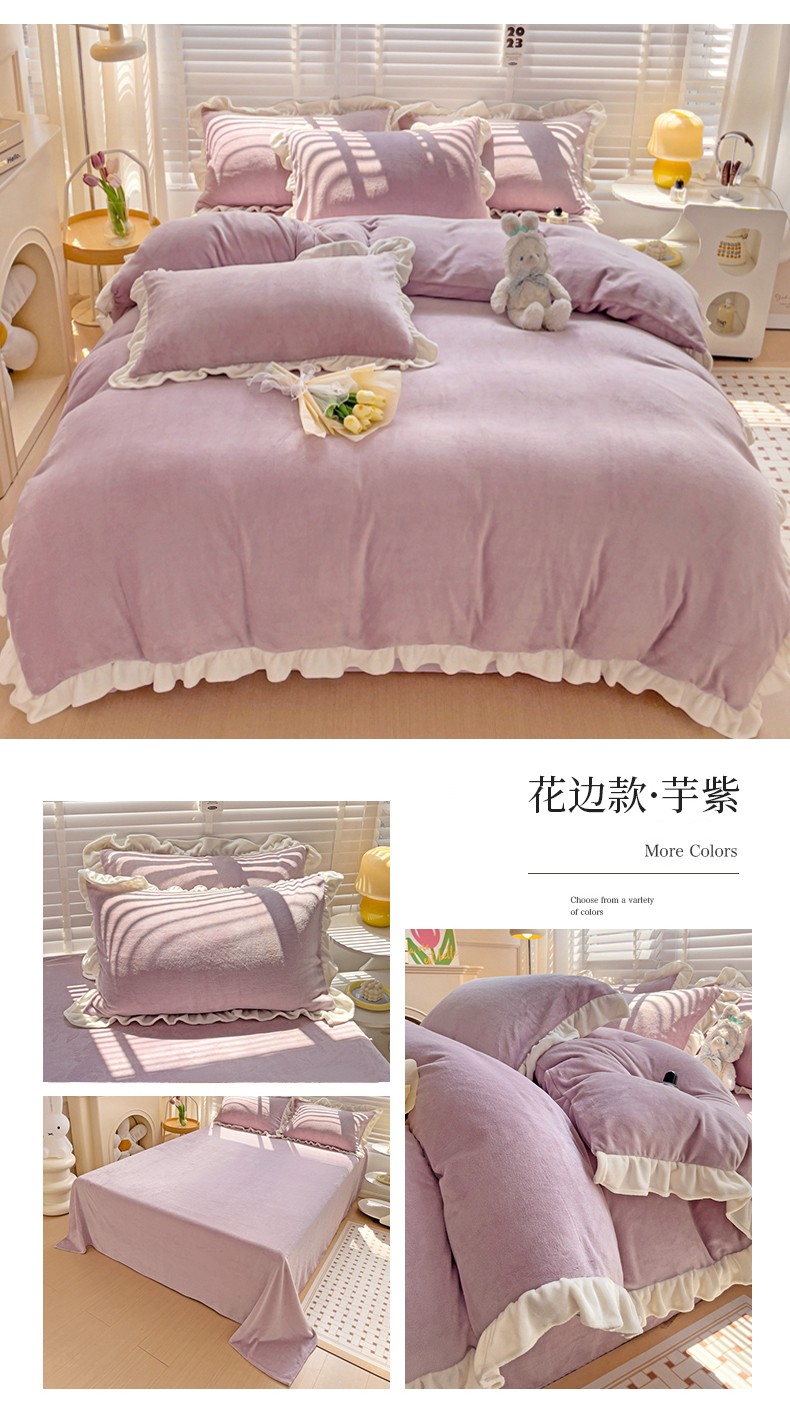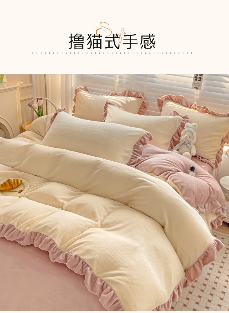 (总)艾咪 新款花边款奶油风纯色牛奶绒四件套三件套