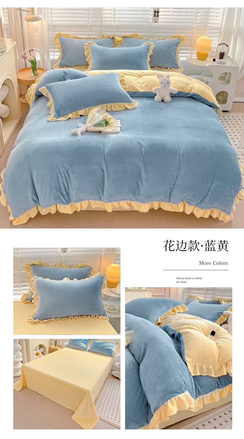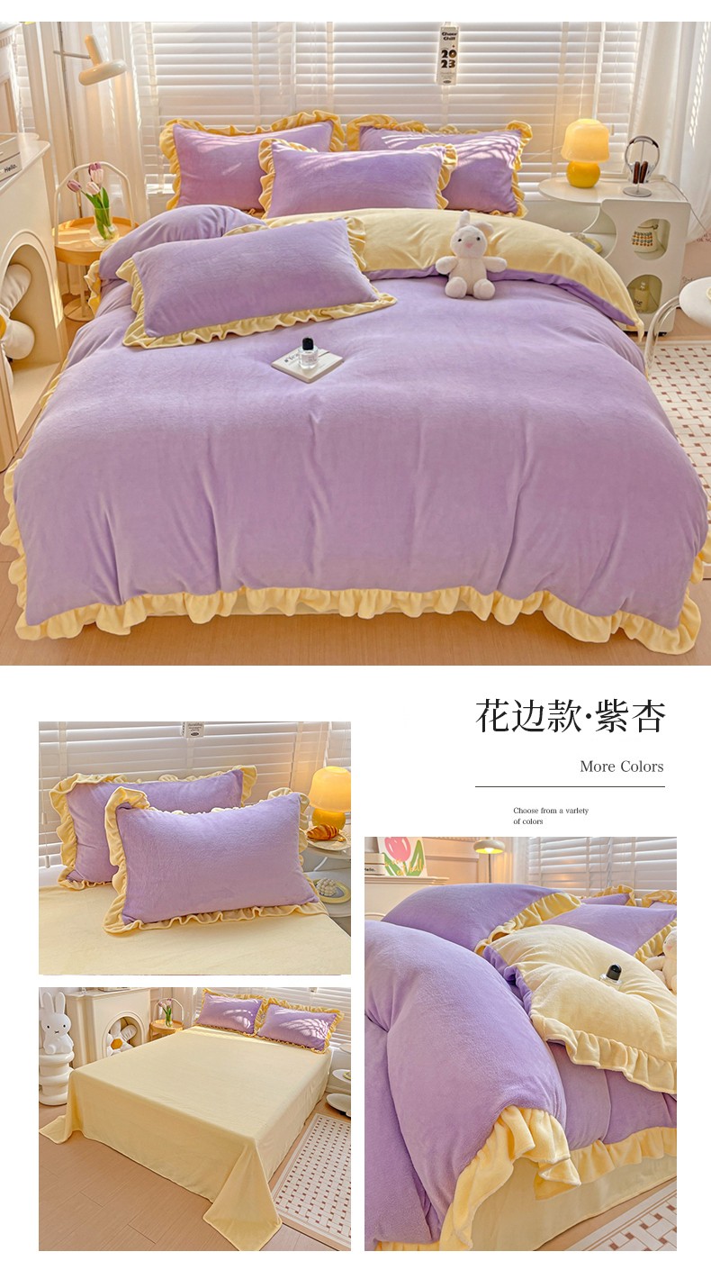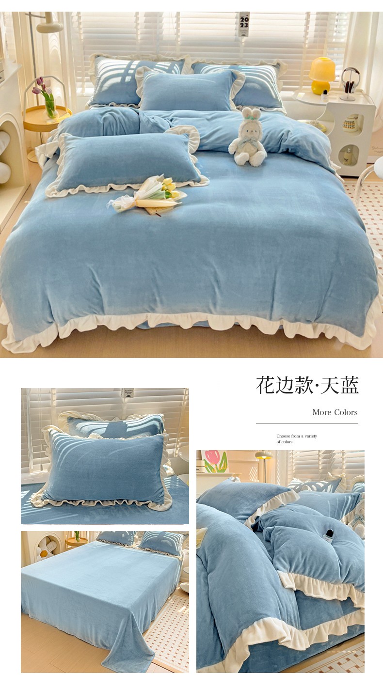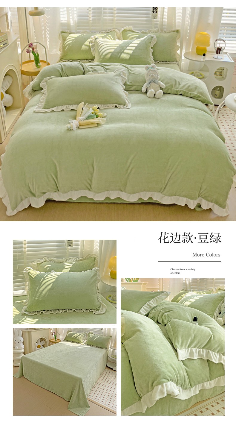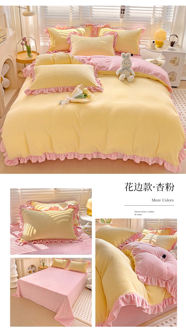 (总)艾咪 新款花边款奶油风纯色牛奶绒四件套三件套