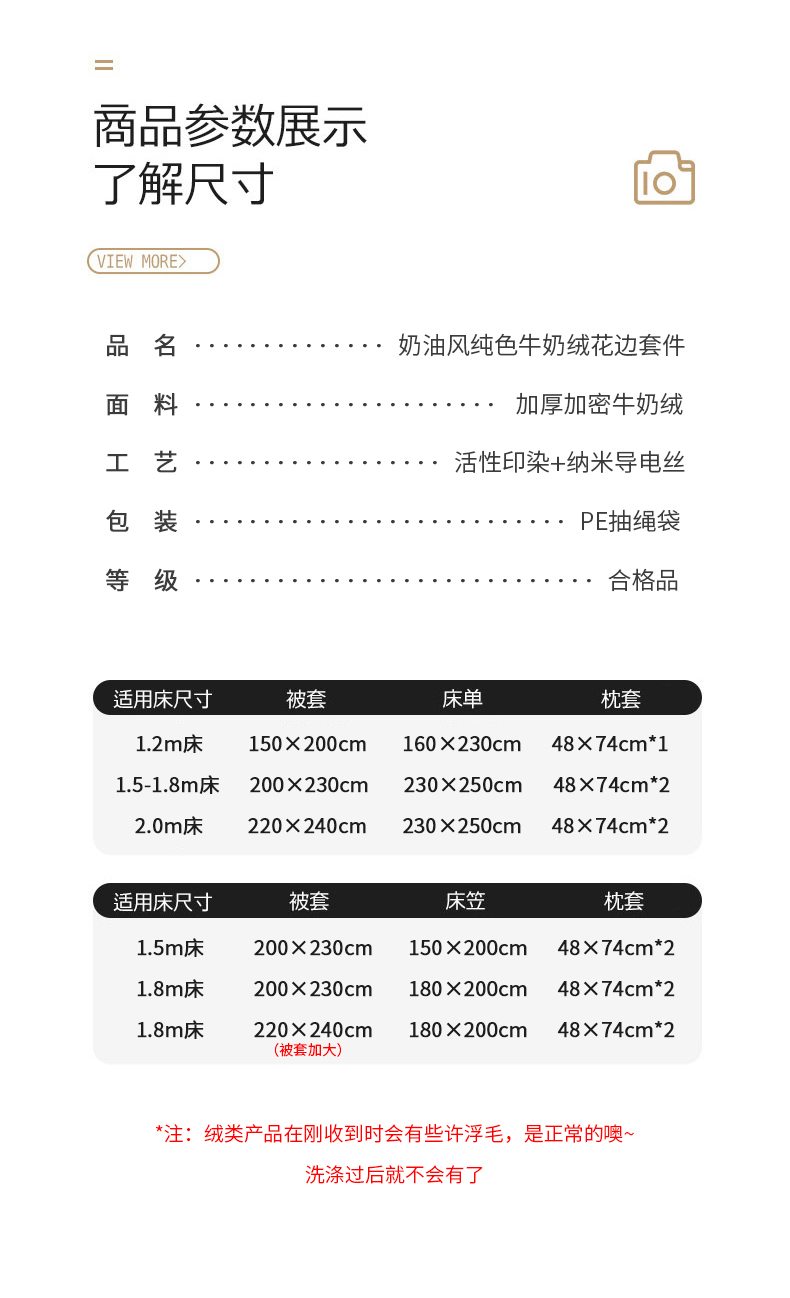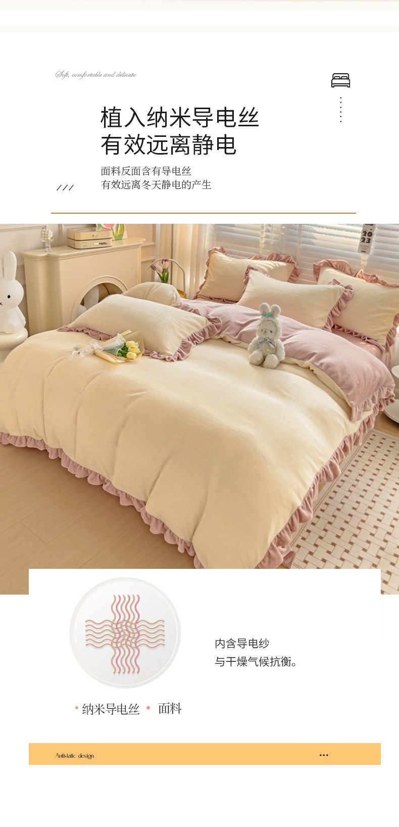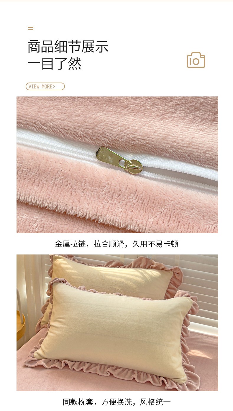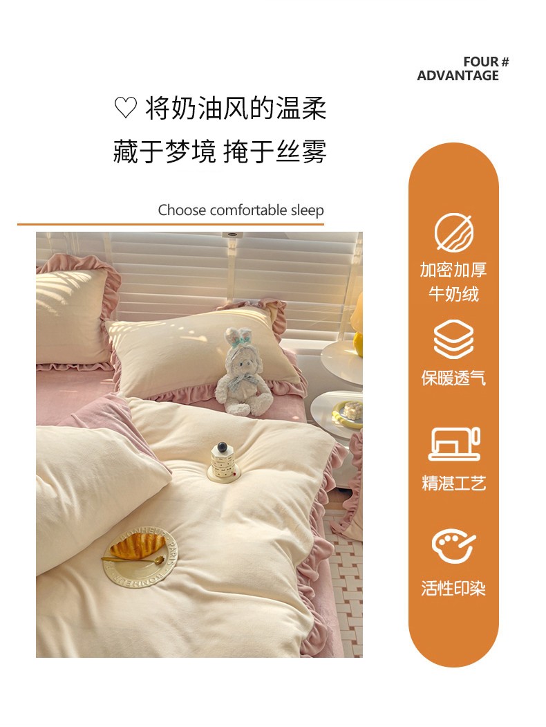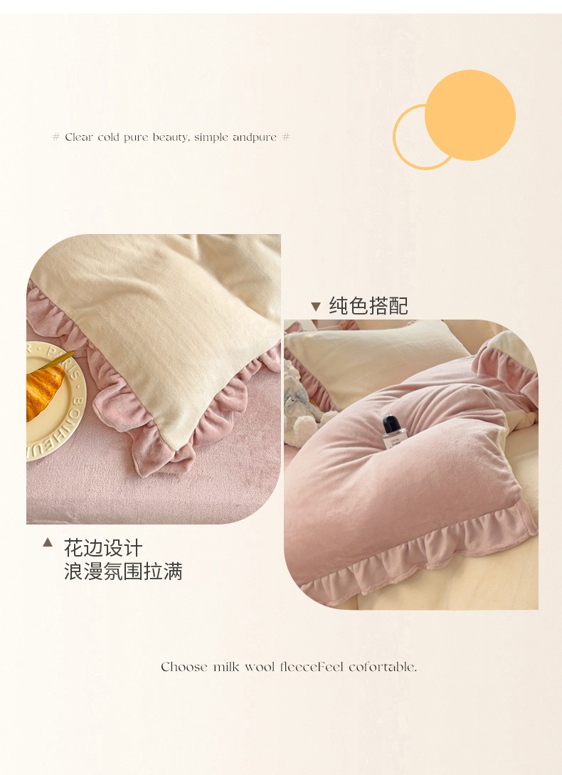 商品名称:(总)艾咪 新款花边款奶油风纯色牛奶绒四件套三件套
