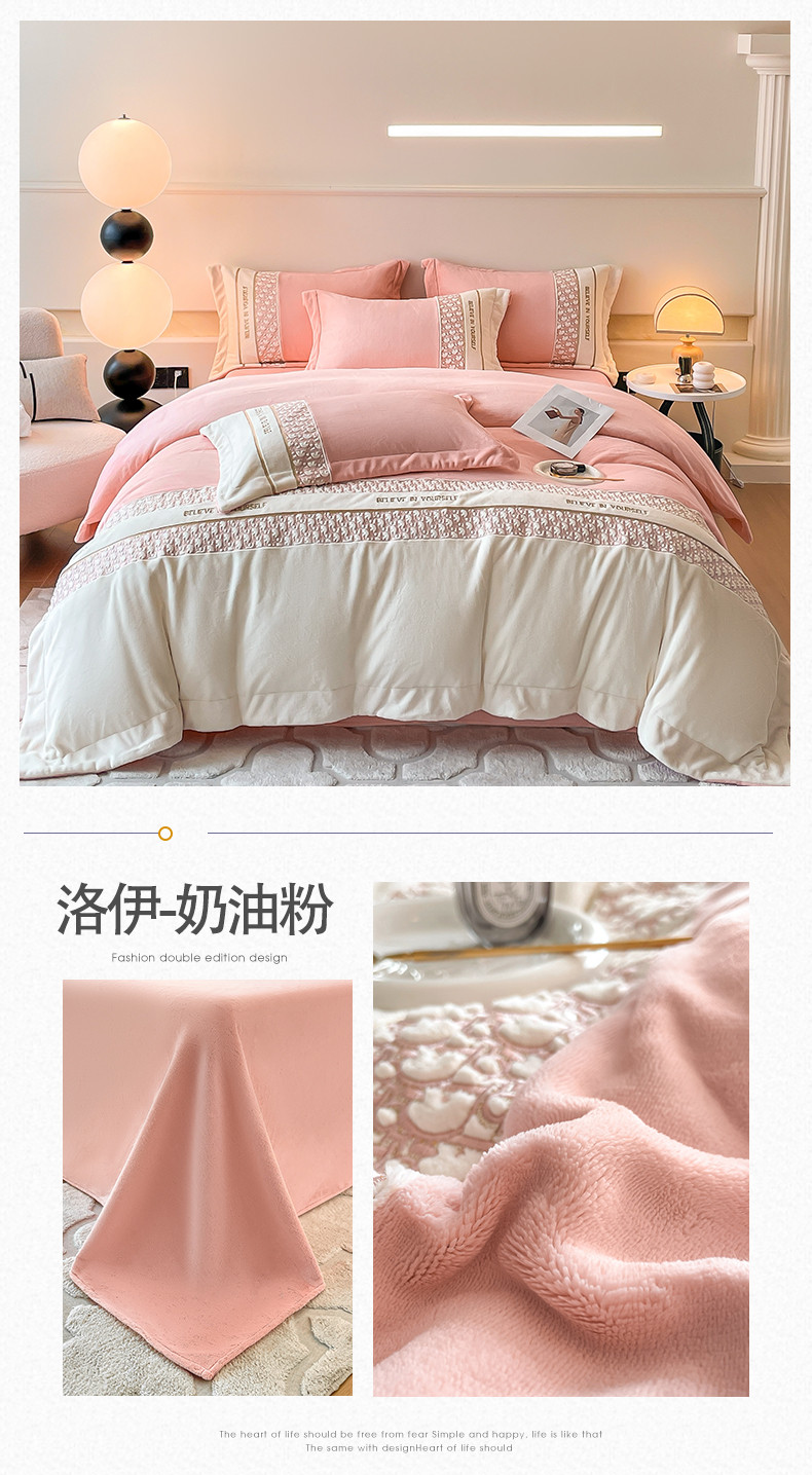 当前位置: 91家纺网 > 商品网购 > 床品套件 > 四件套 > 牛奶绒四件套 > 慕色家纺 2023新款牛奶绒绣花四件套-洛伊 洛伊-奶油粉