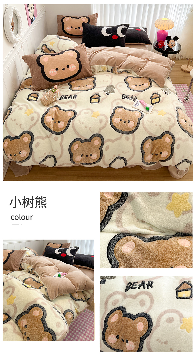 当前位置: 91家纺网 > 商品网购 > 床品套件 > 四件套 > 牛奶绒四件套 > 顾里家纺 2023新款ins韩风∙立体牛奶雪花绒系列四件套 小树熊