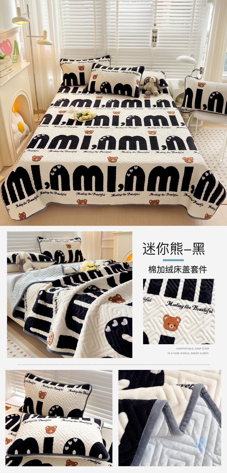 商品名称:羽爱 2024新款棉加绒床盖套件 迷你熊-黑