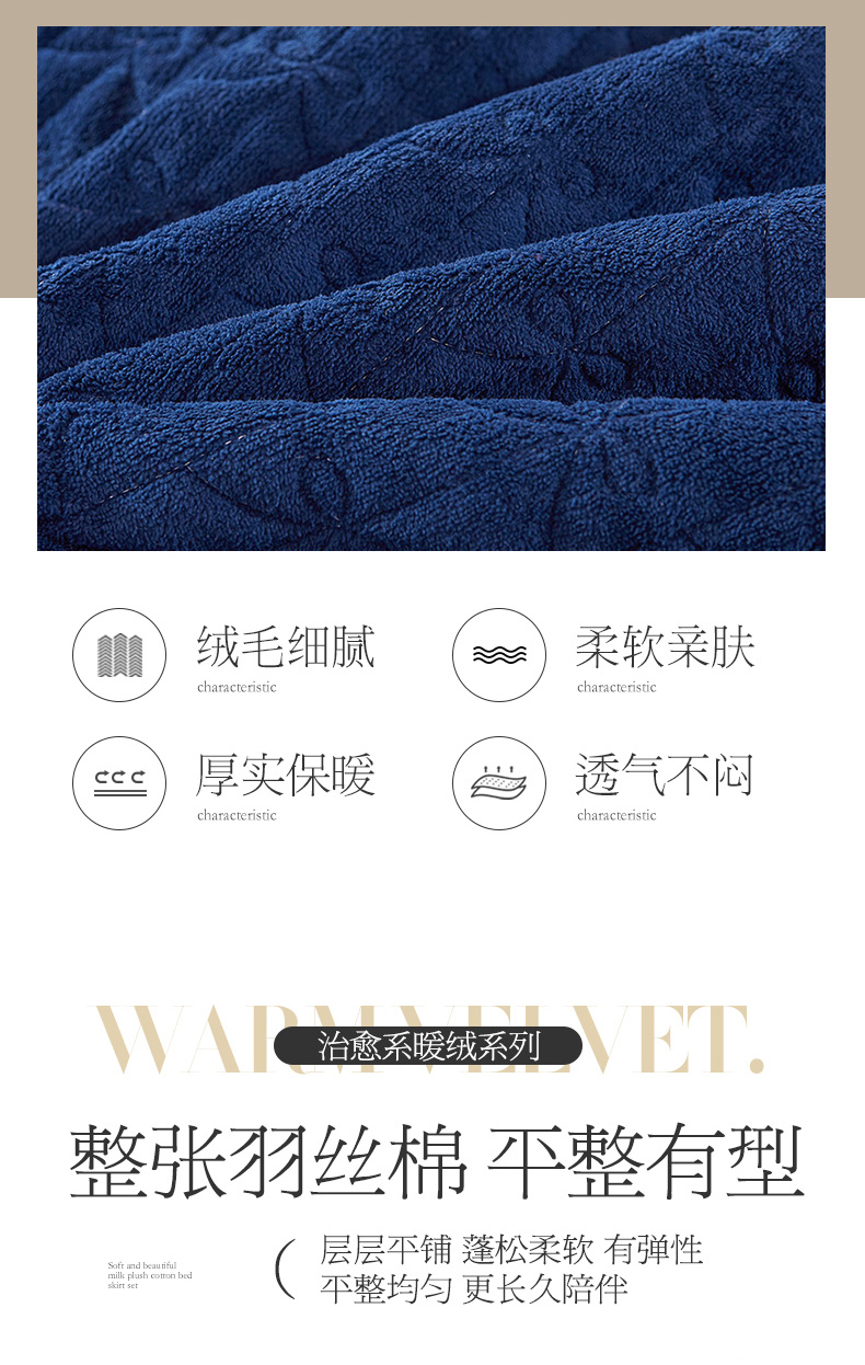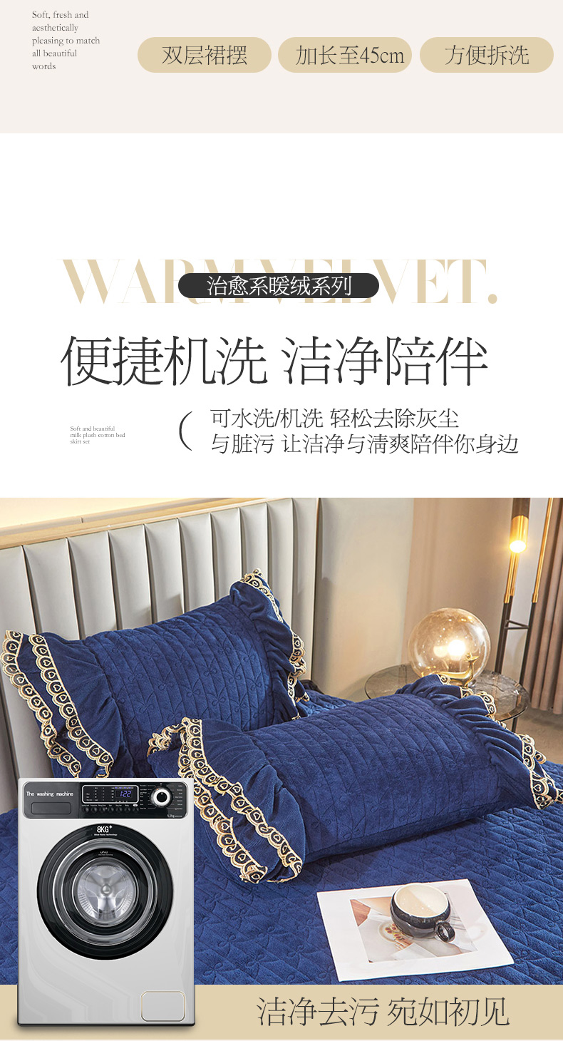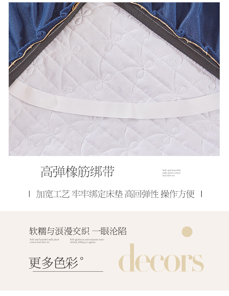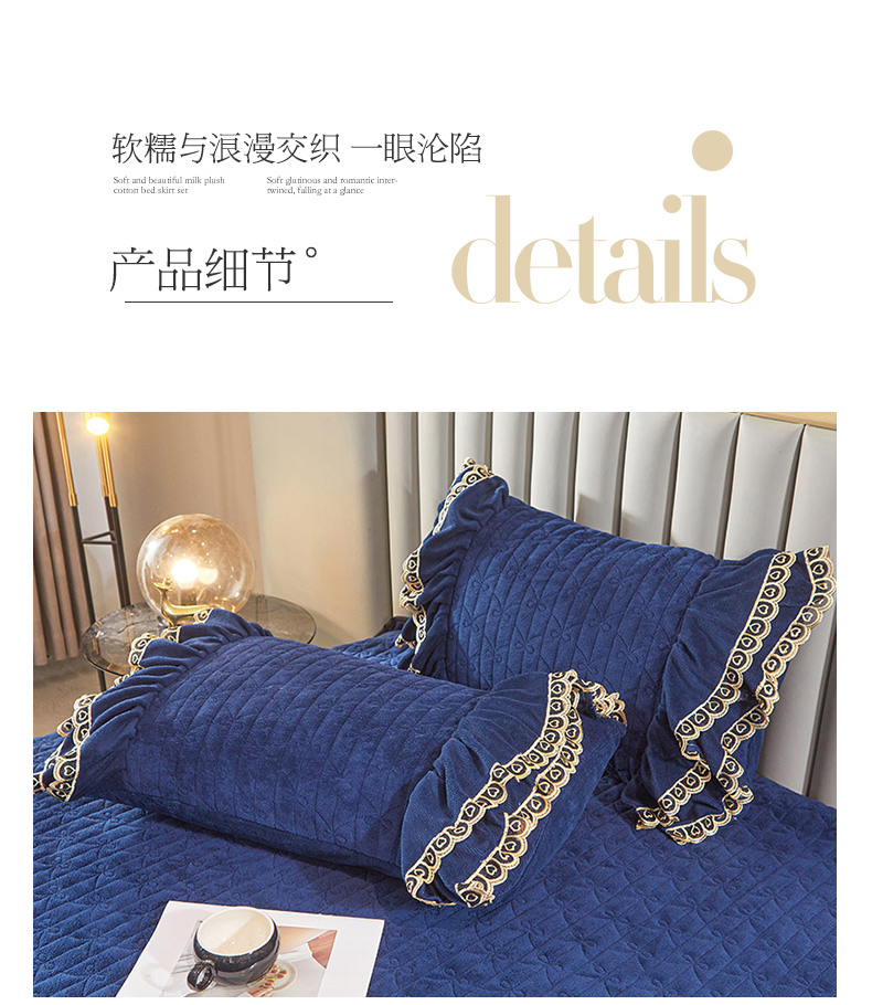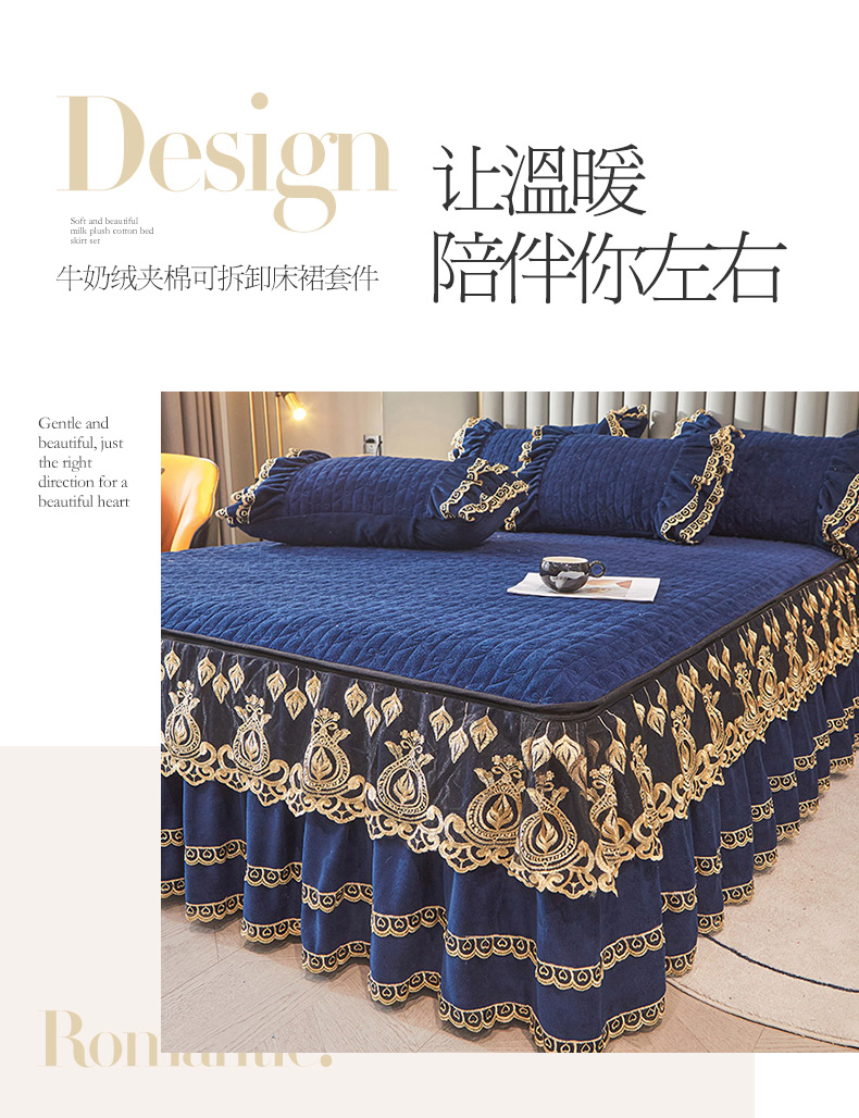 商品名称:虹星家纺 2023新款牛奶绒夹棉蕾丝可拆卸床裙系列单床裙 梦幻巴黎 宝蓝