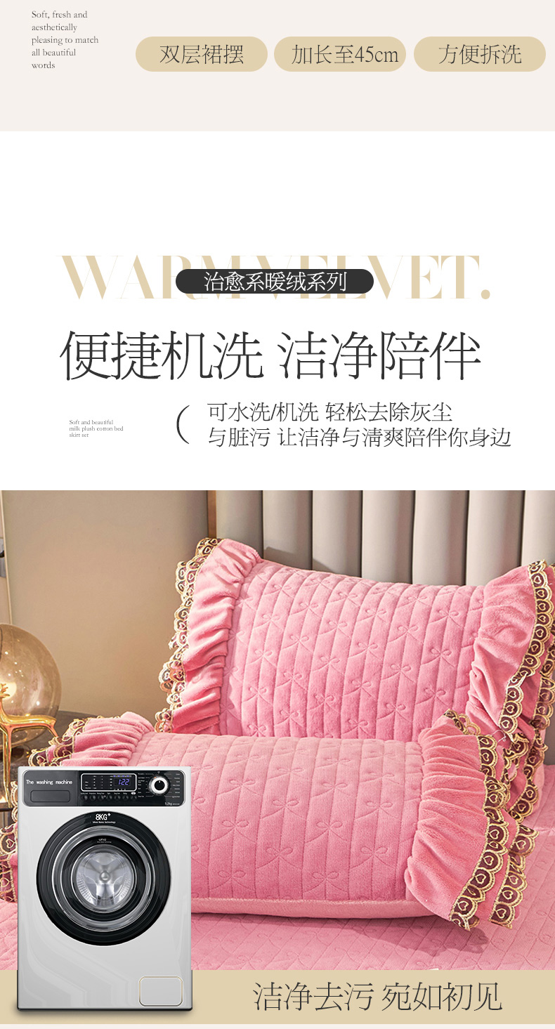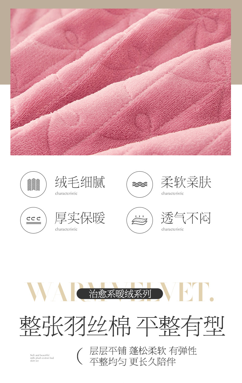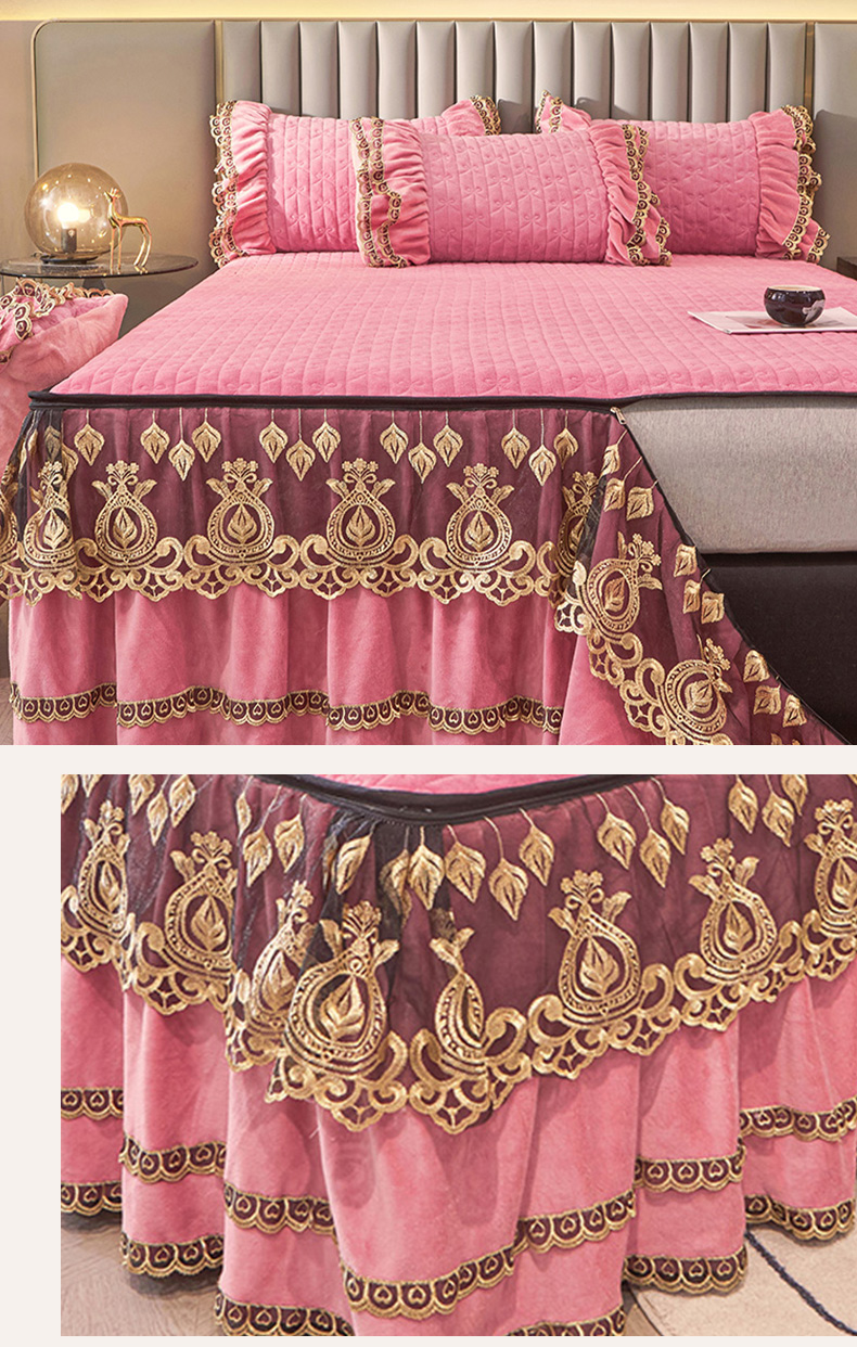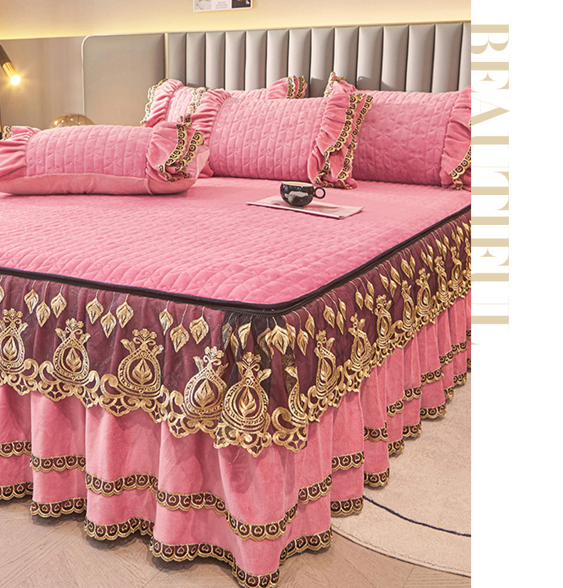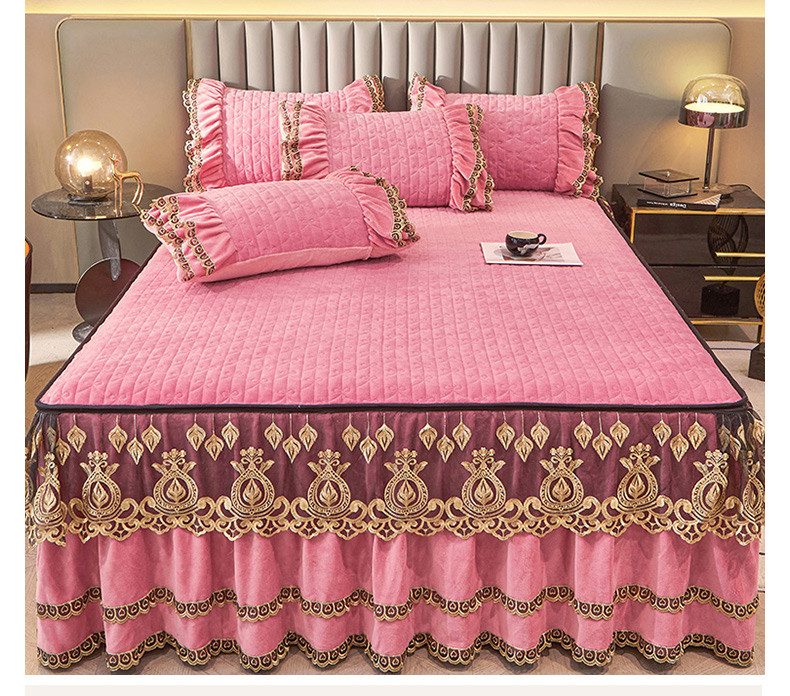 商品名称:虹星家纺 2023新款牛奶绒夹棉蕾丝可拆卸床裙系列单床裙 梦幻巴黎 胭脂