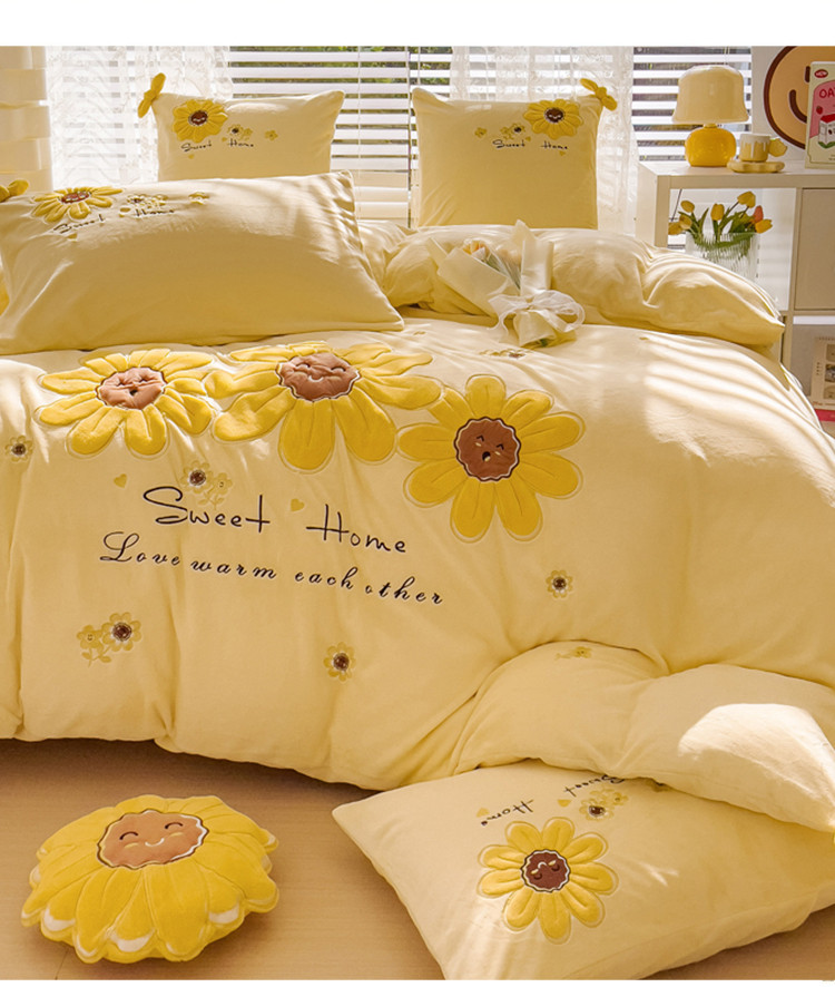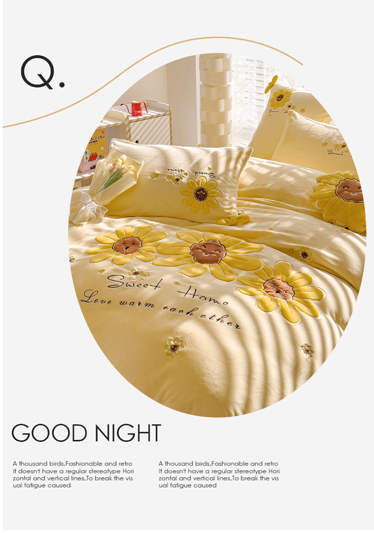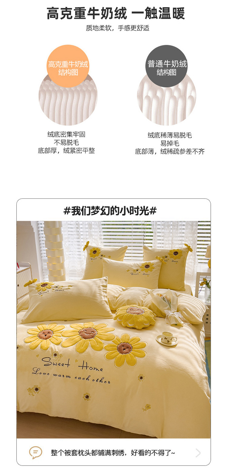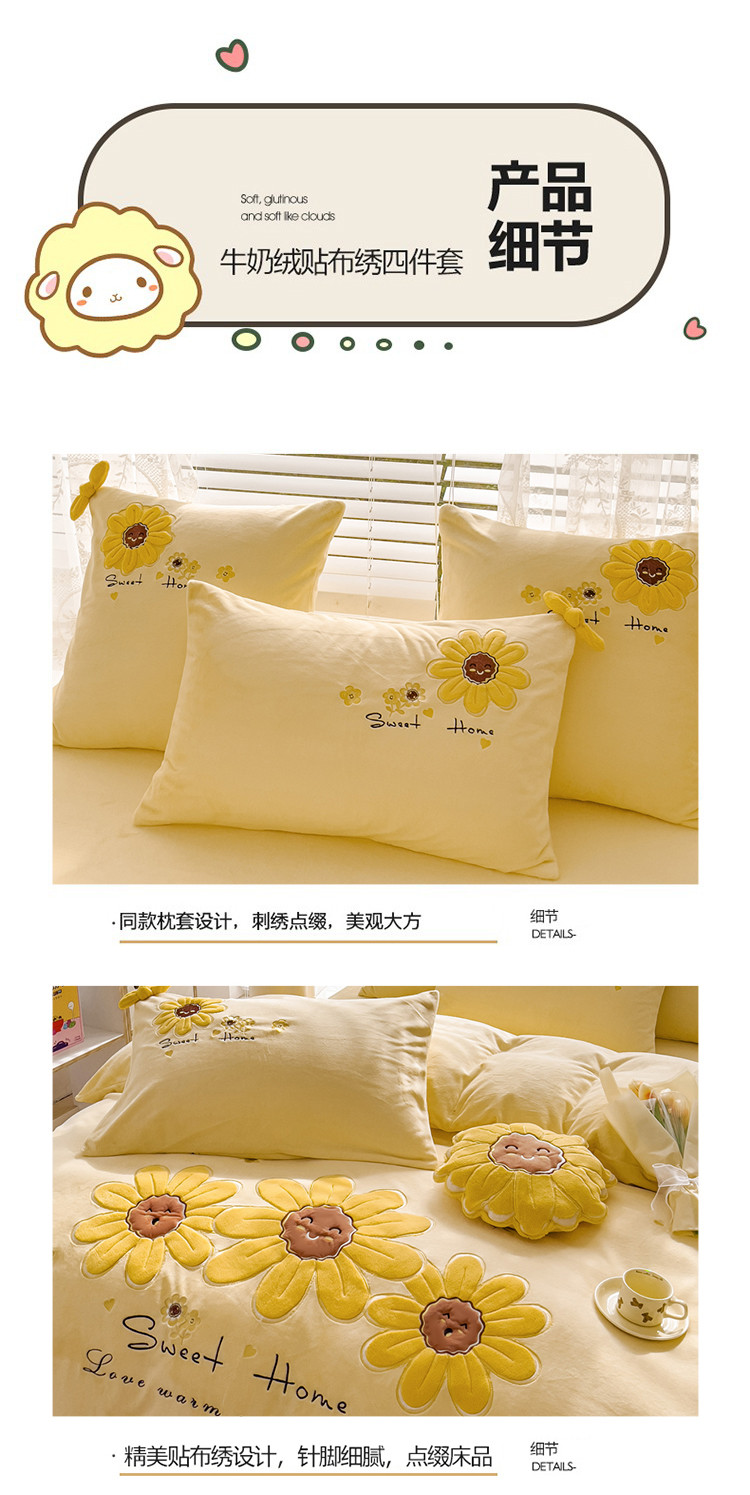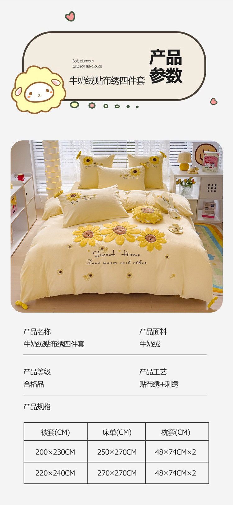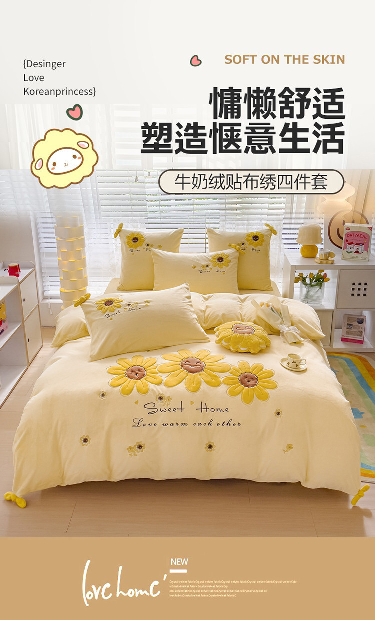 (总)品家居 2025新款牛奶绒贴布绣四件套-向阳花开