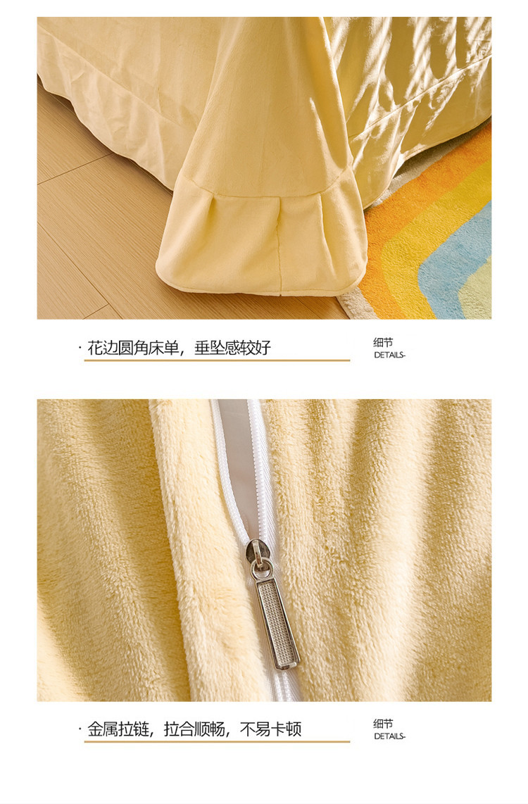 (总)品家居 2025新款AB版高克重兔绒牛奶绒四件套-花絮,花絮-粉色,花絮-黄色