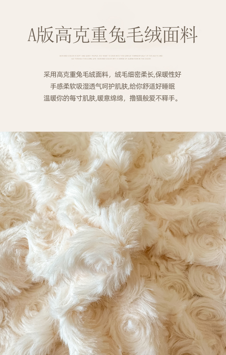 (总)米莱家纺 2023新款兔毛四件套 玫瑰花,玫瑰花-白加咖,玫瑰花-白加粉,玫瑰花-粉色,玫瑰花-灰色,玫瑰花-咖色,玫瑰花-绿色,玫瑰花-紫色