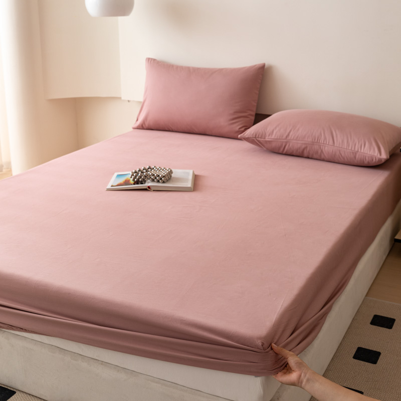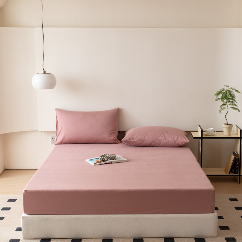 商品名称:怡家居 2023新款全棉100支磨毛纯色单品床笠 雾玫粉