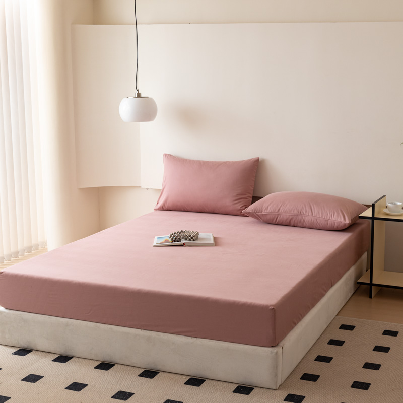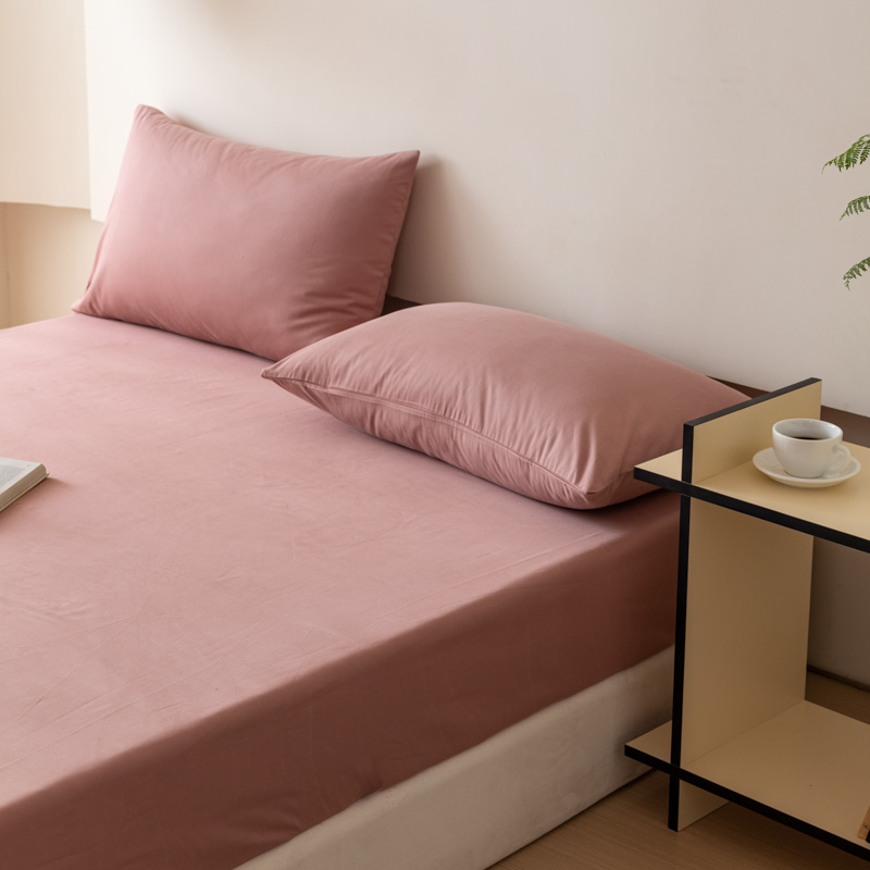 怡家居 2023新款全棉100支磨毛纯色单品床笠 雾玫粉