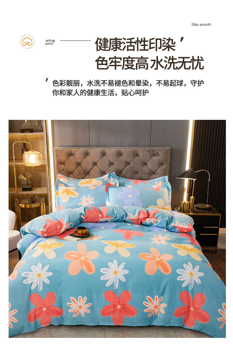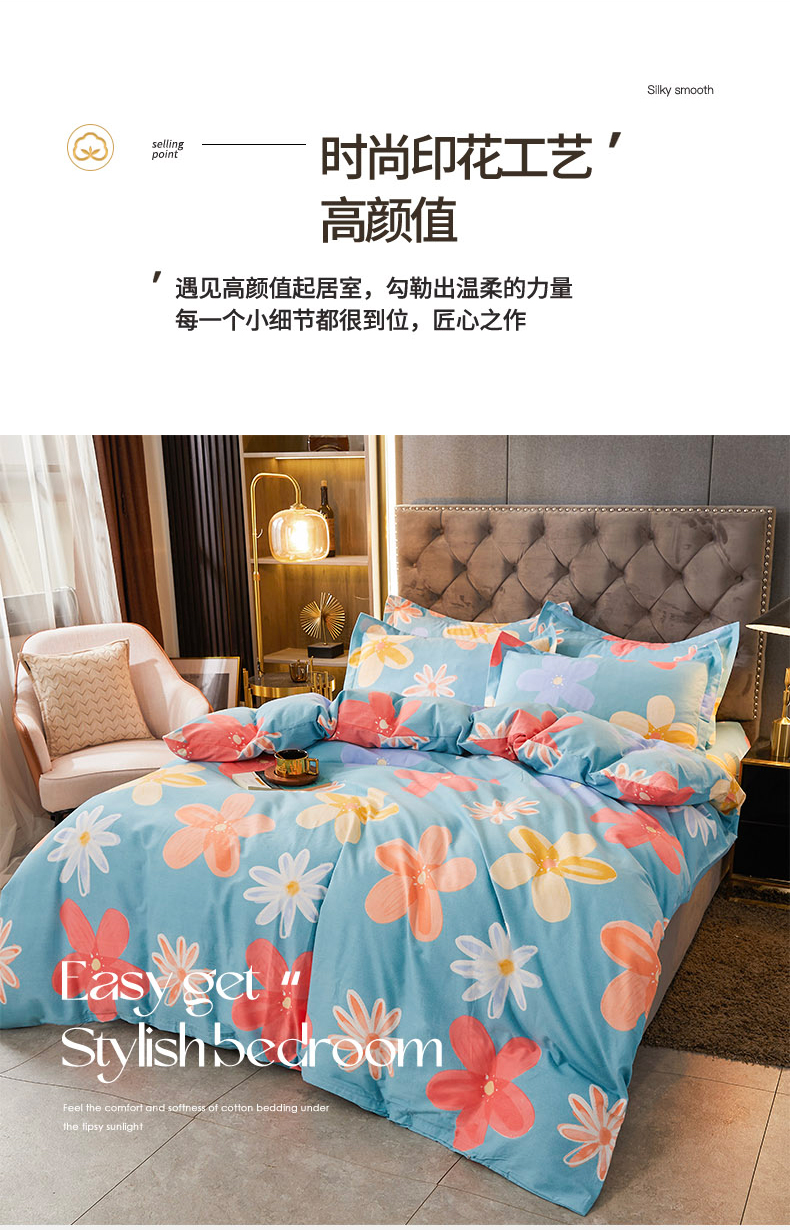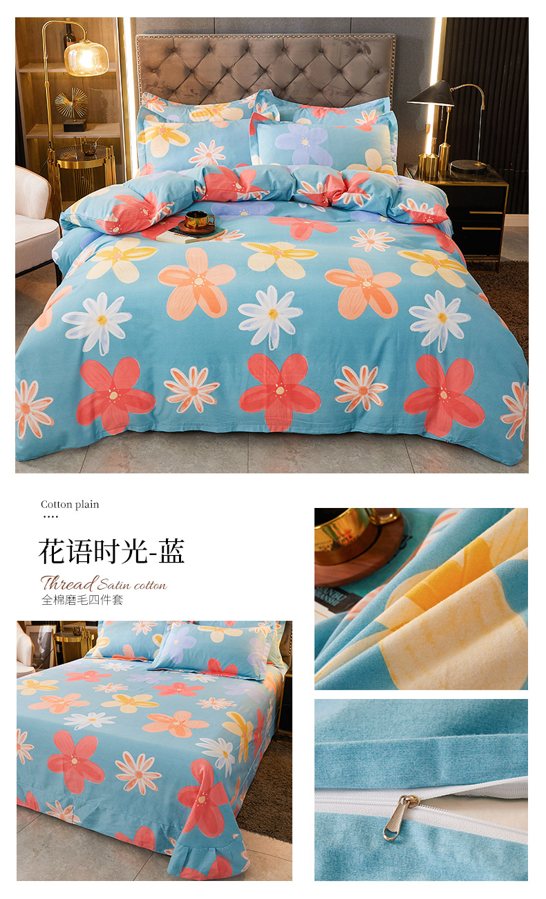 当前位置: 91家纺网 > 商品网购 > 床品套件 > 四件套 > 普通磨毛四件套 > 伊而梦 2023新款全棉磨毛印花四件套系列四件套 花语时光-蓝