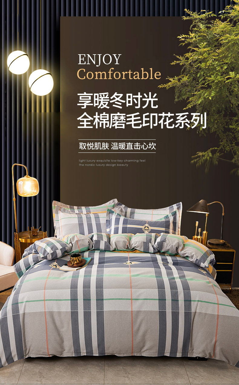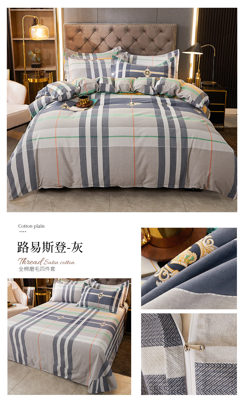 当前位置: 91家纺网 > 商品网购 > 床品套件 > 四件套 > 普通磨毛四件套 > 伊而梦 2023新款全棉磨毛印花四件套系列四件套 路易斯登-灰