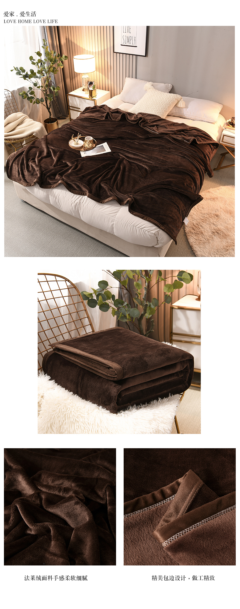 商品名称:仟人梦 2024新款纯色法莱绒毛毯多功能毛毯 咖啡