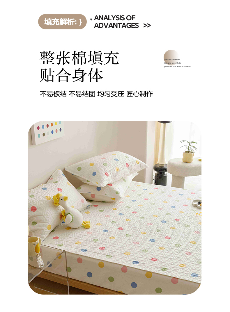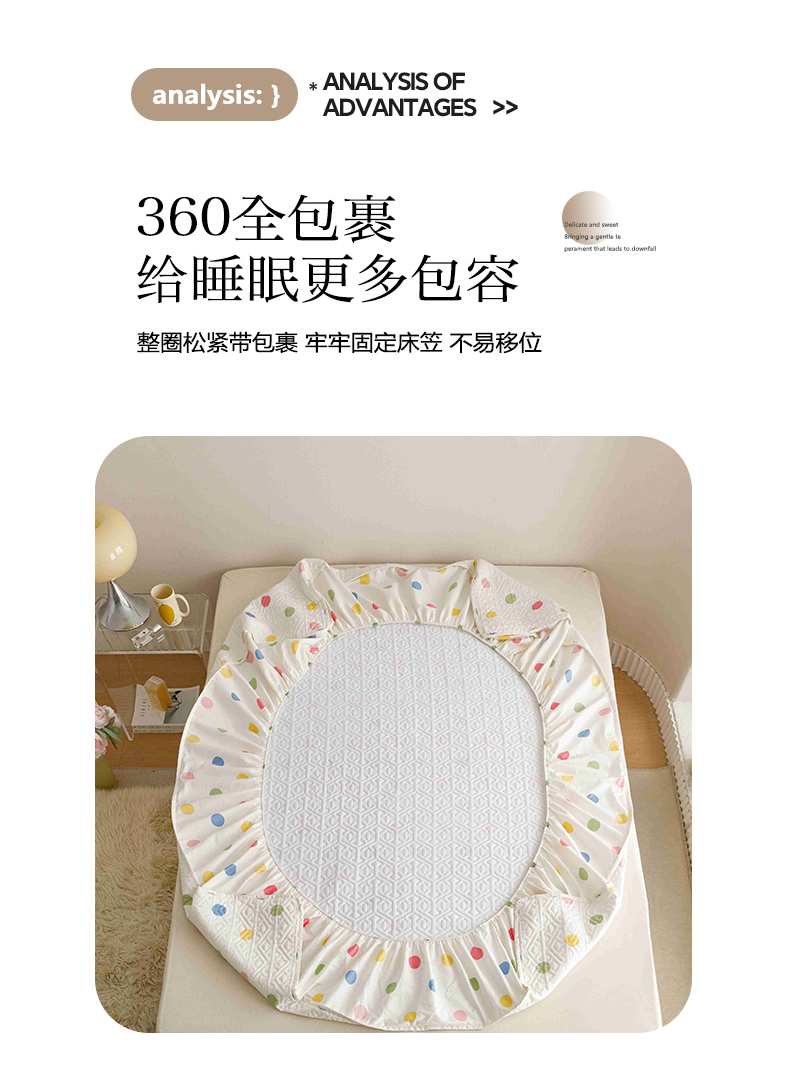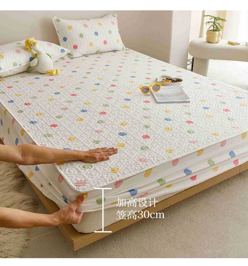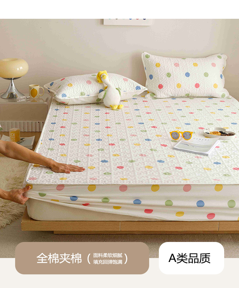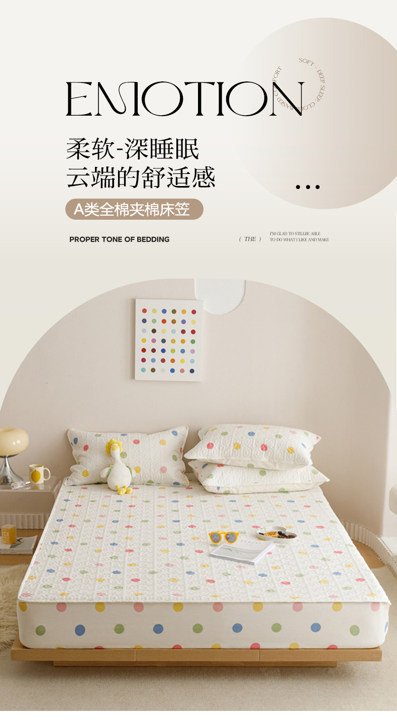 商品名称:忘忧草 2023新款A类全棉印花夹棉床笠 活力波点