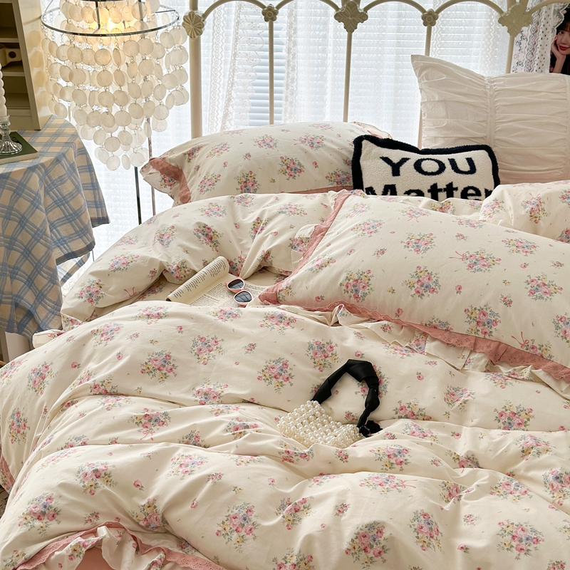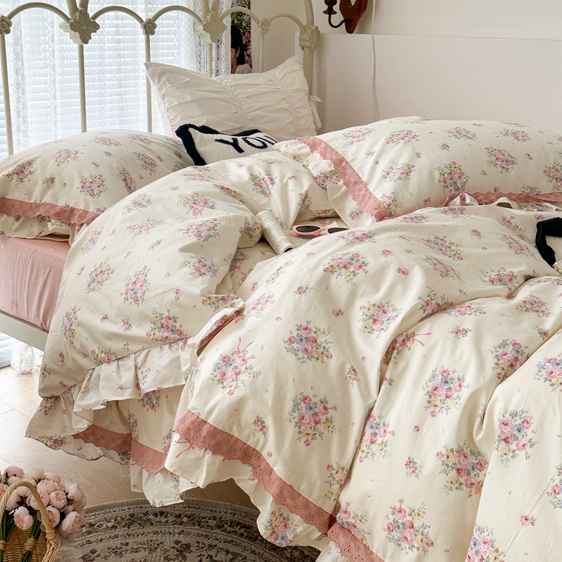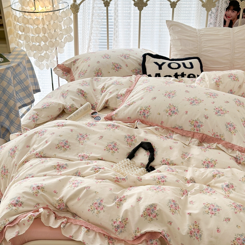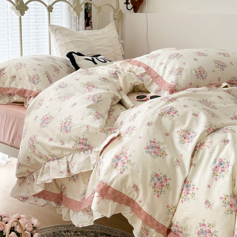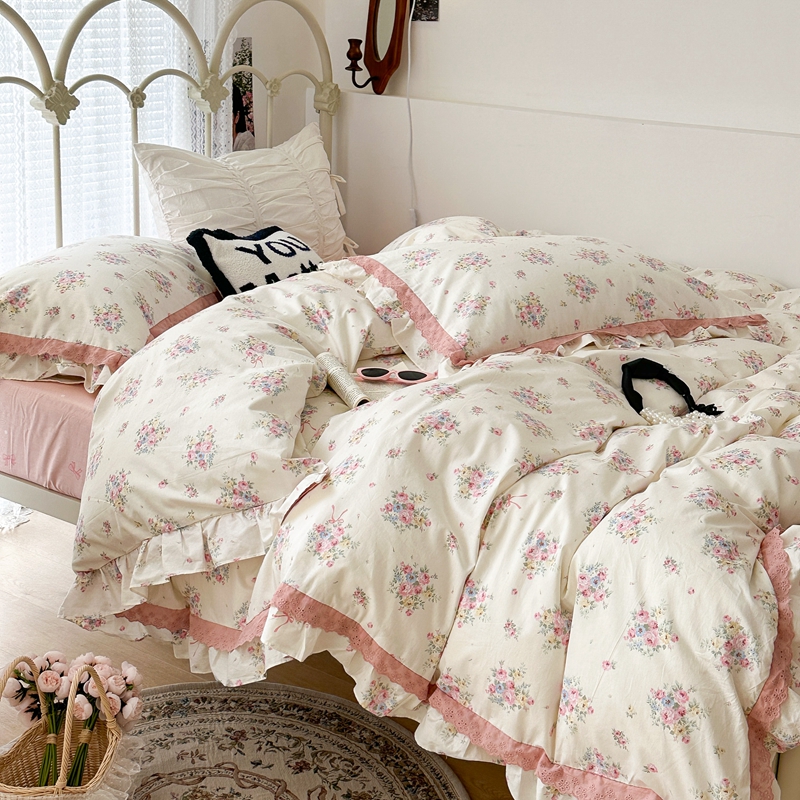 商品名称:昔可家纺 2023新款双层蕾丝花边款四件套 粉花簇
