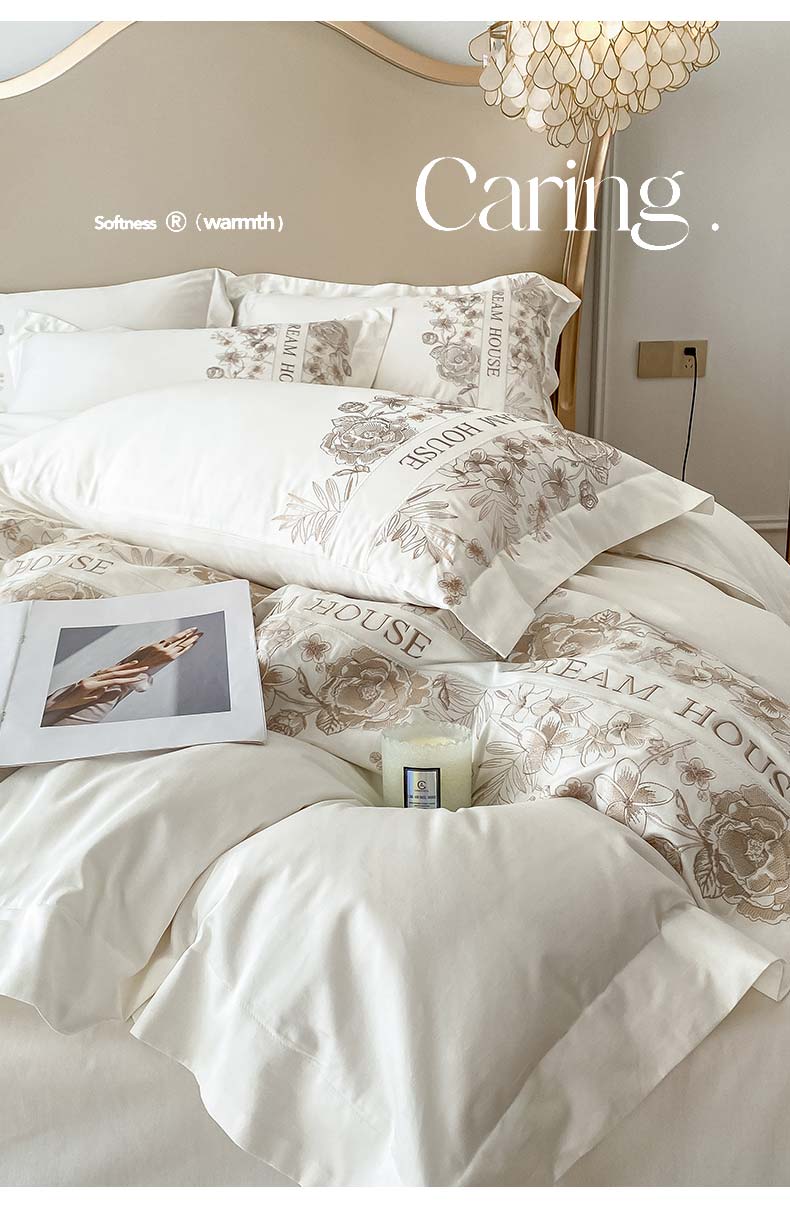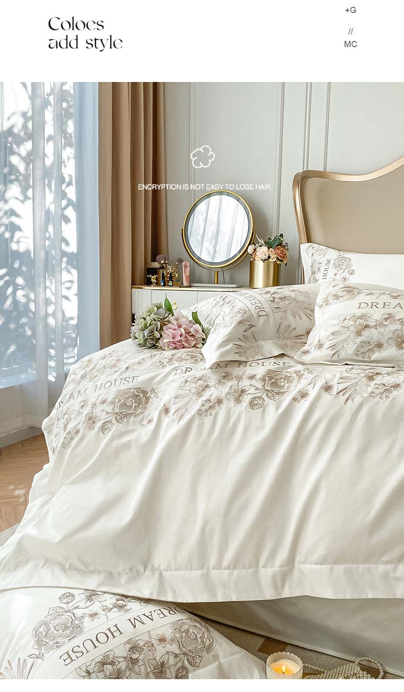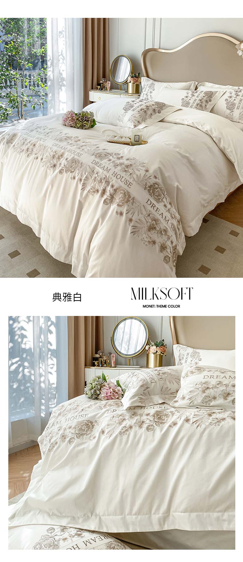 【网红直播爆款】夏季长绒棉四件套纯色纯棉全棉刺绣简约大气天丝棉床单床笠款床上用品 典雅白