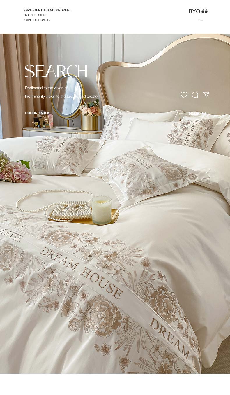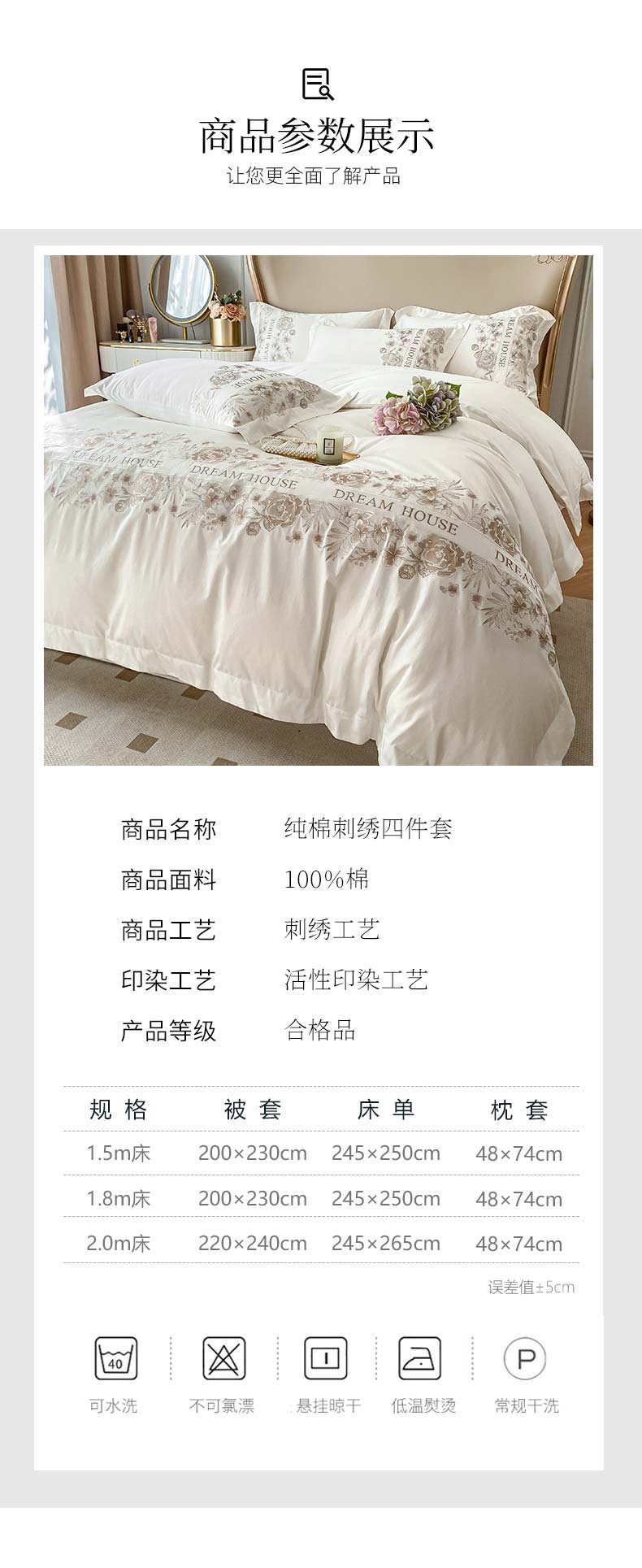 商品名称: 【网红直播爆款】夏季长绒棉四件套纯色纯棉全棉刺绣简约大气天丝棉床单床笠款床上用品 典雅白