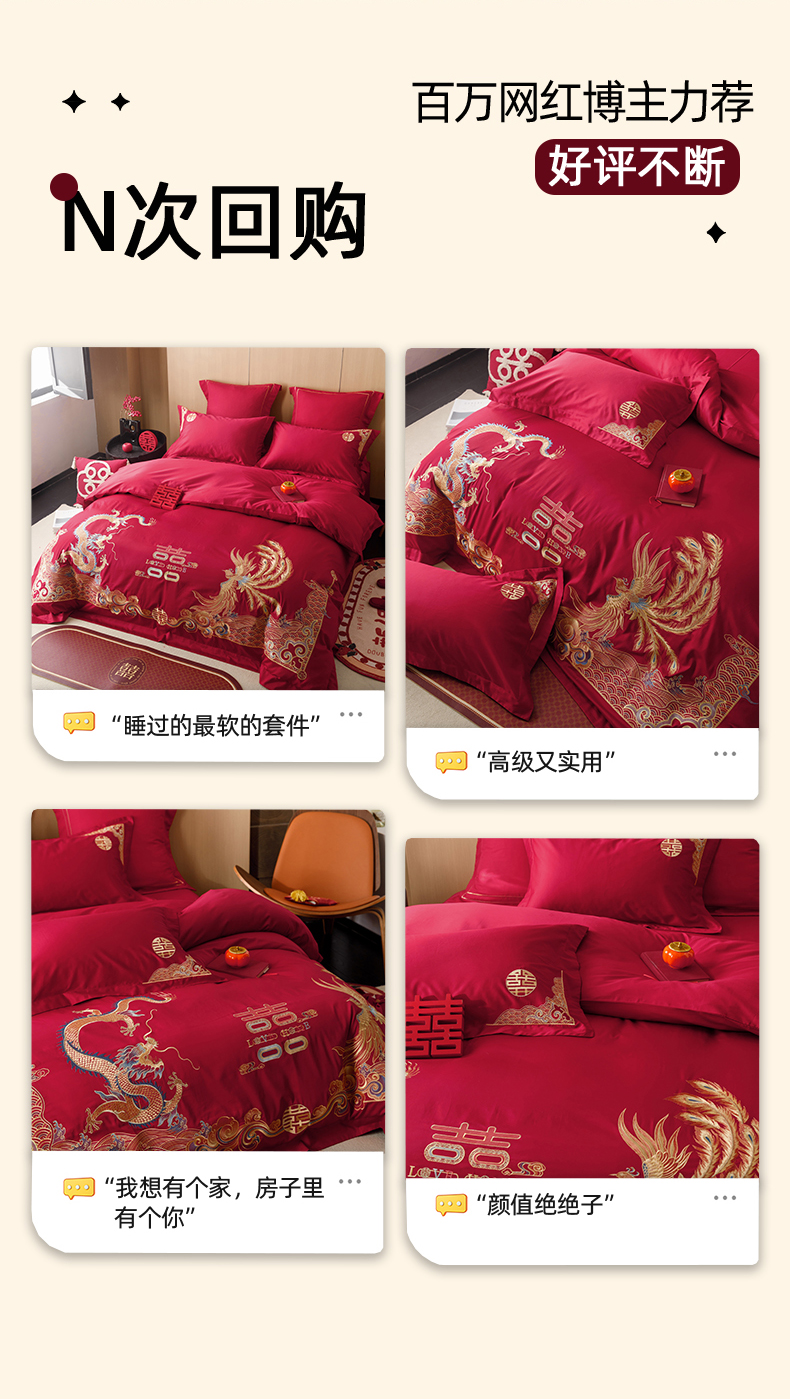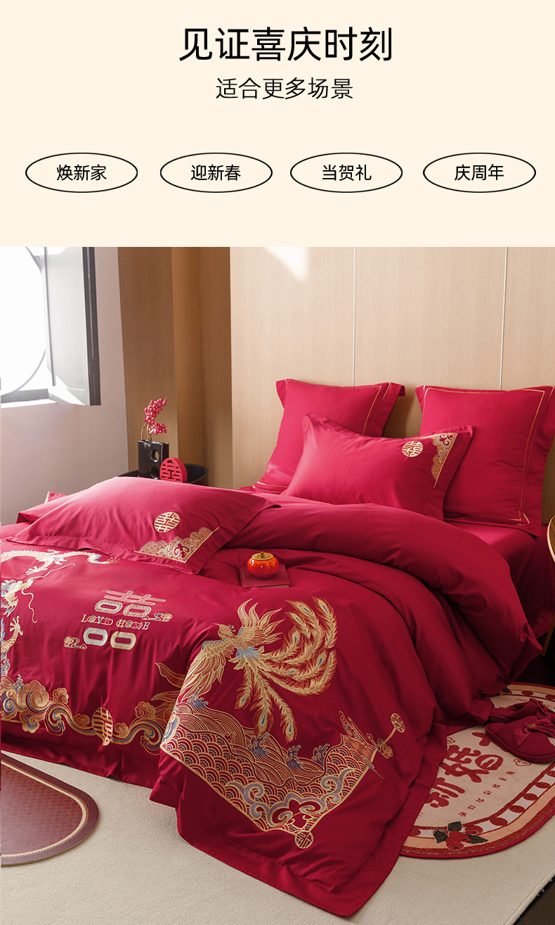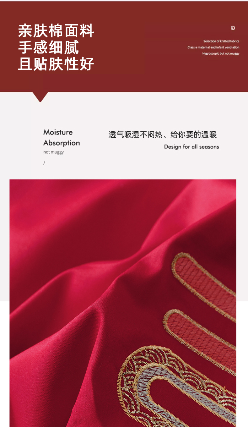(总)苏源家居 2025新款 大红婚庆结婚喜庆刺绣轻奢四件套-吾家有喜系列,吾家有喜-红色,吾家有喜-金色
