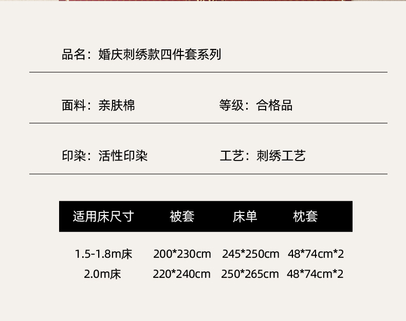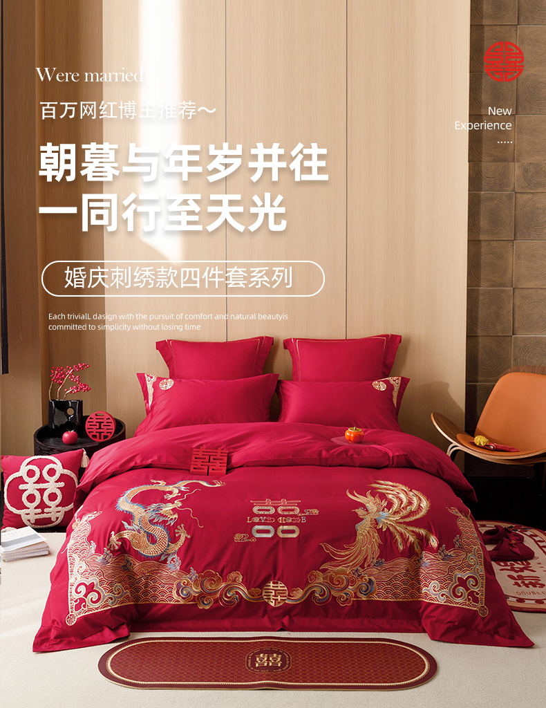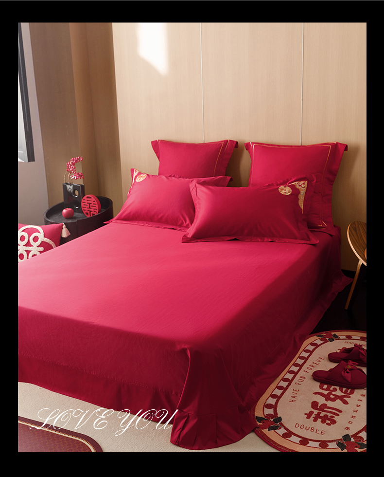 (总)苏源家居 2026 新款简单婚庆大红小logo刺绣结婚四件套,coco小姐,甜蜜蜜