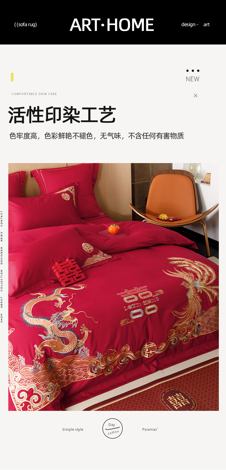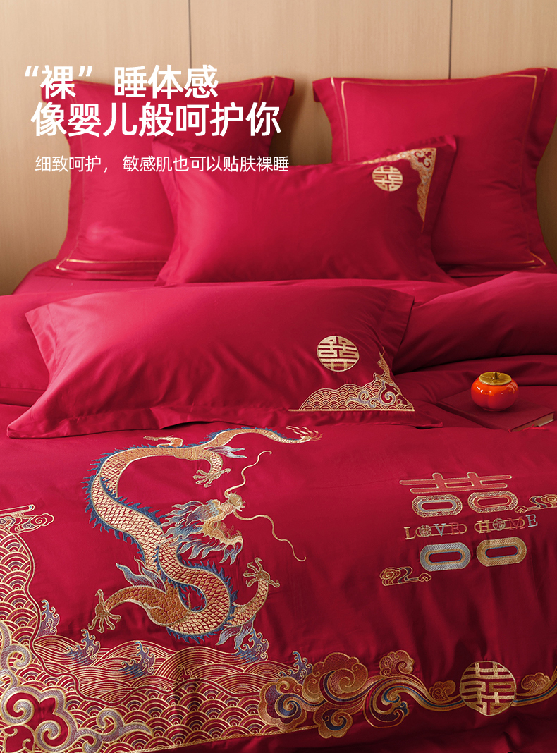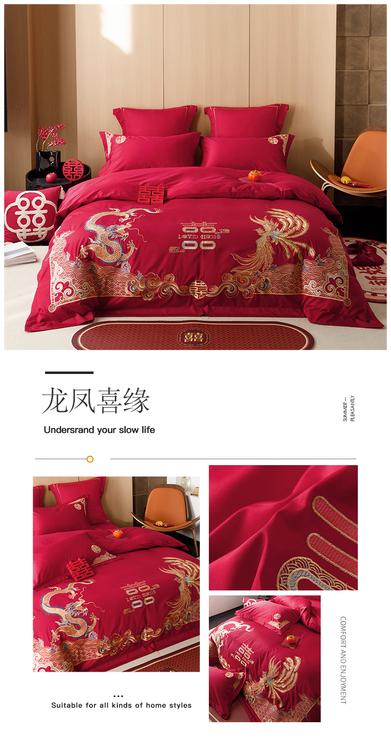 苏源家居 2024新款新婚喜庆大红龙凤重工刺绣圆角床单四件套 龙飞凤舞