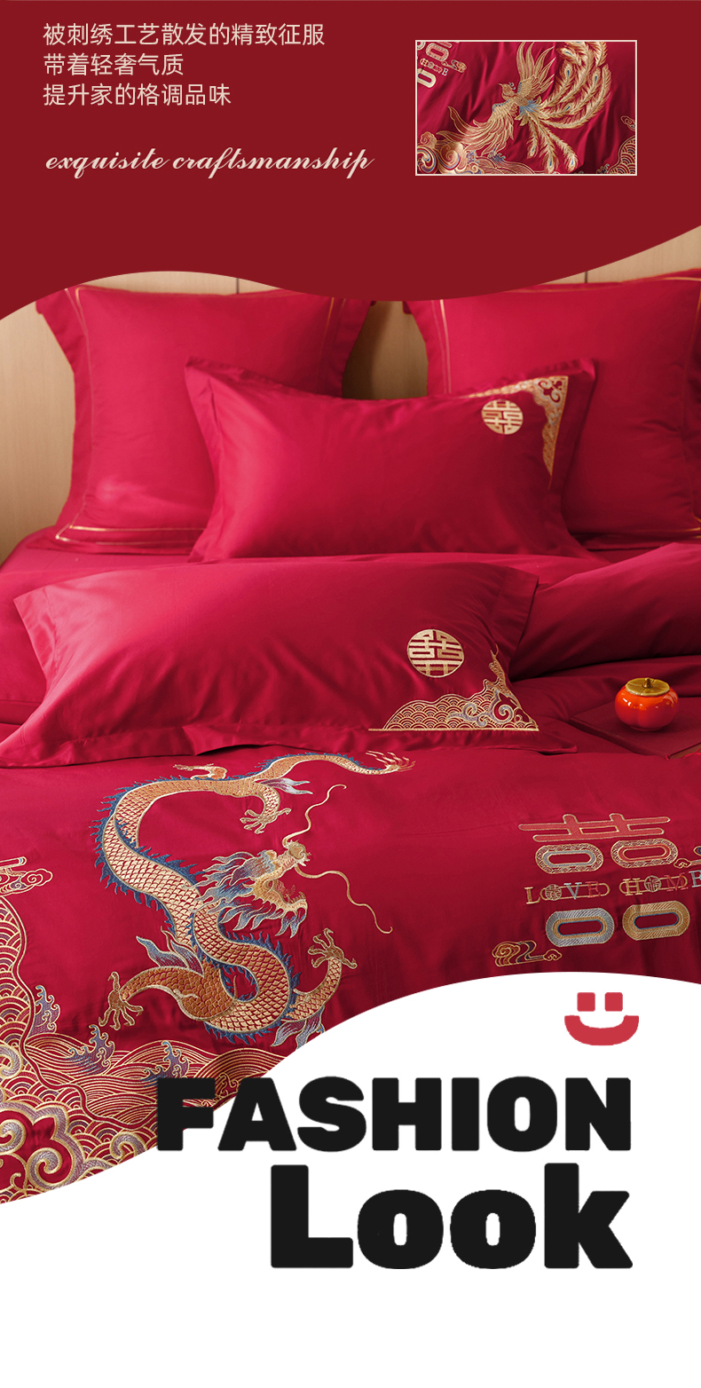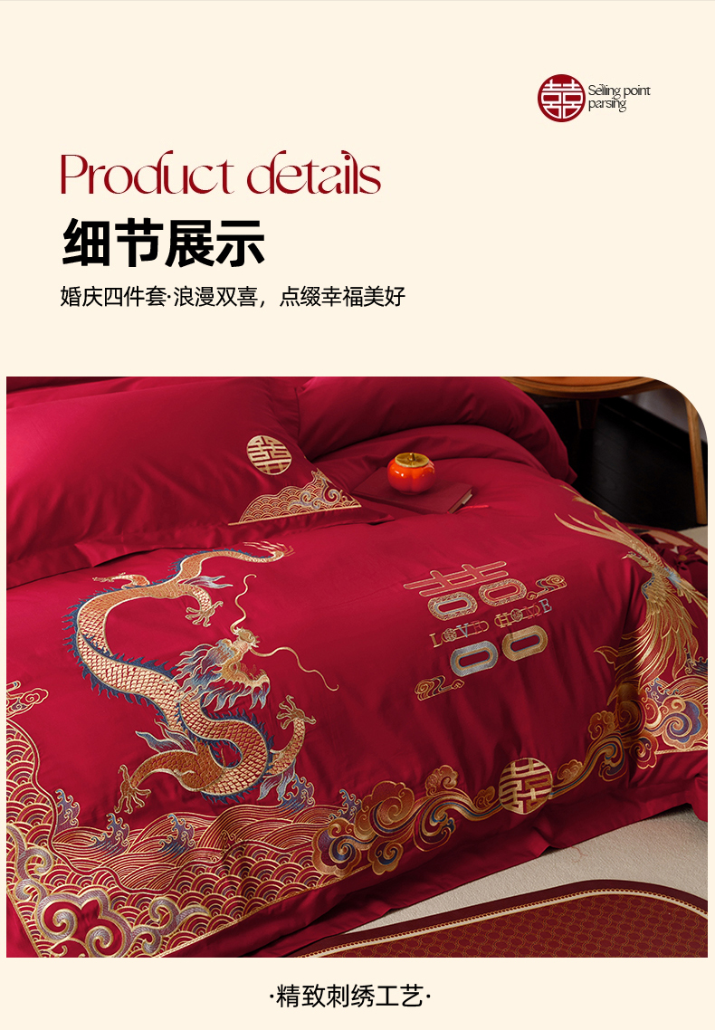 商品名称:苏源家居 2024新款新婚喜庆大红龙凤重工刺绣圆角床单四件套 龙飞凤舞