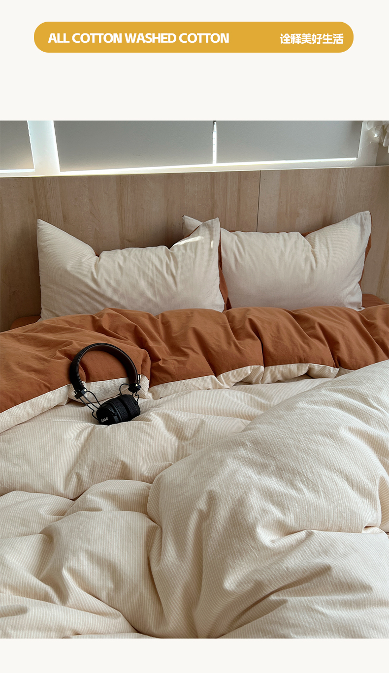 商品名称:雅居纺家纺 2024新款色织水洗棉四件套 细条焦糖