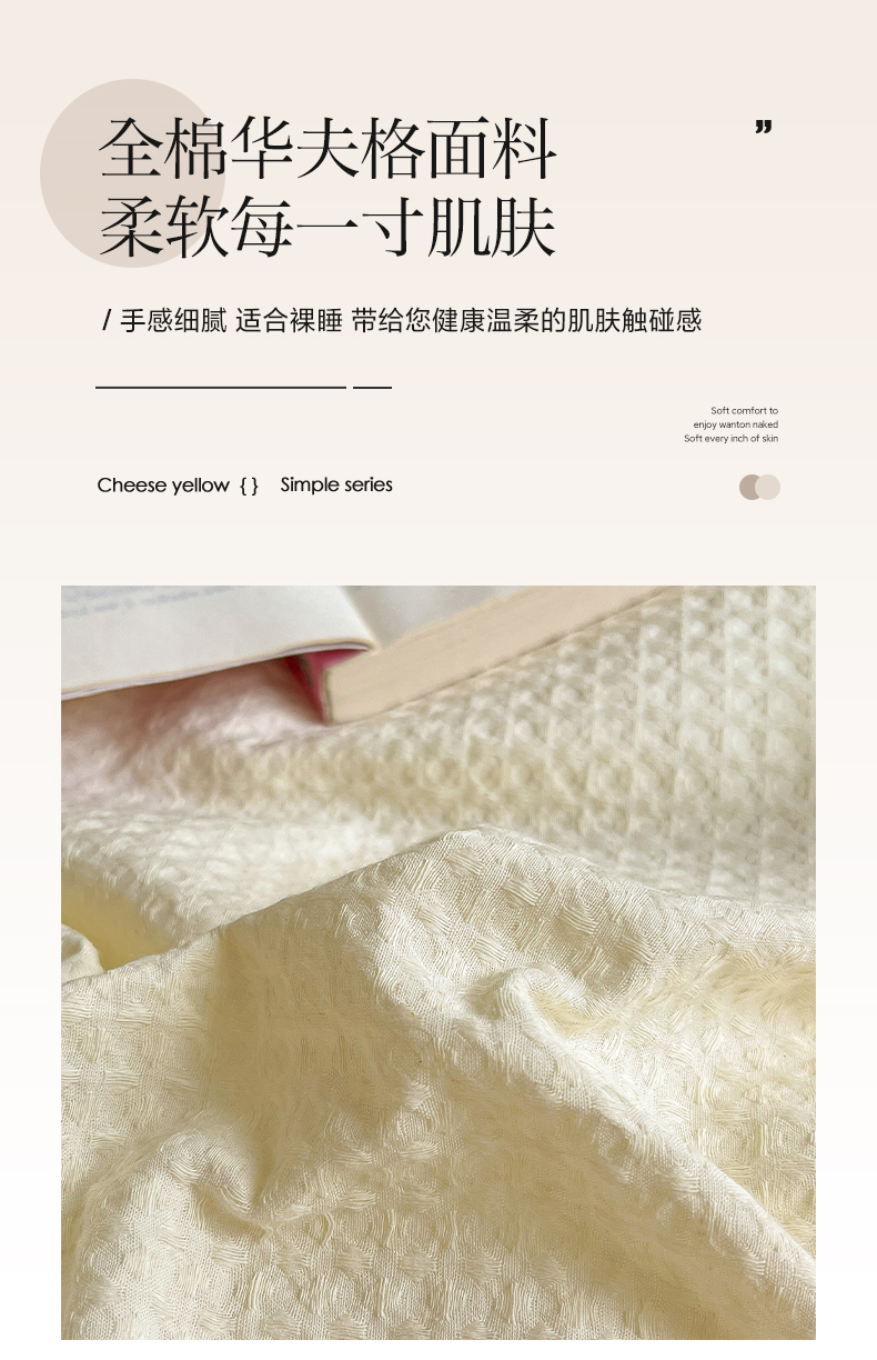 (总)雅居纺家纺 2022新款全棉华夫格普通款四件套,焦糖,米驼,奶油白,柔粉,深灰,雾蓝,月灰