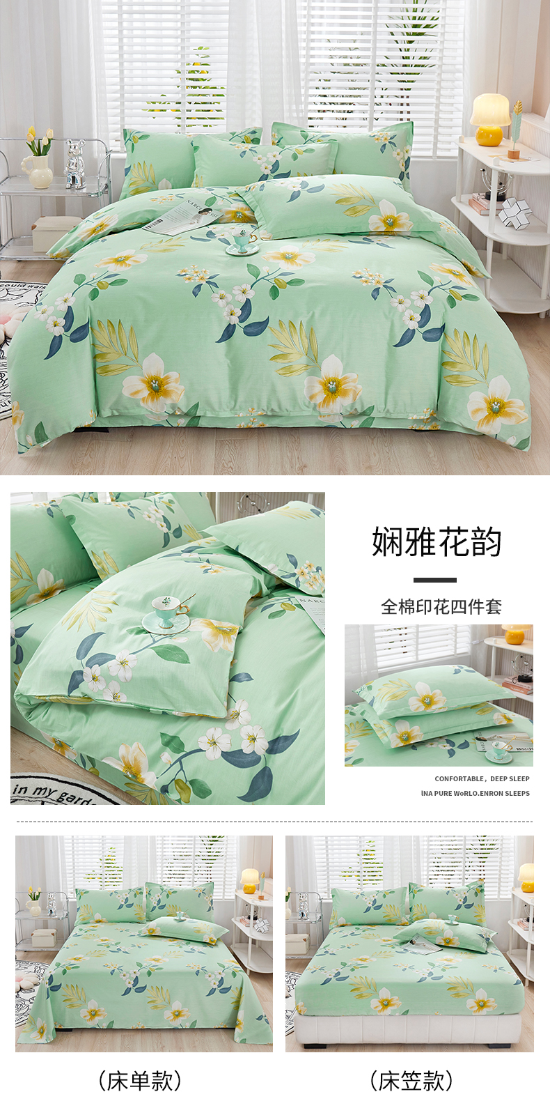 当前位置: 91家纺网 > 商品网购 > 床品套件 > 四件套 > 全棉普通四件套 > 名优家纺 2024新款13070套件系列 全棉印花四件套 娴雅花韵