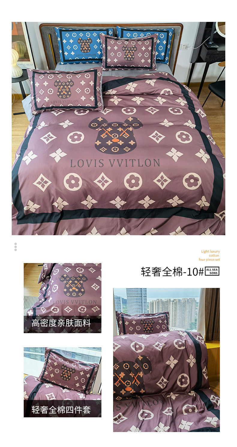 (总)色鬼布艺高端家居主号 2025新款轻奢亲肤纯棉数码印花网红热款四件套,豹纹香,白金V,白香花,大H,黑白迪,黑白V,灰迪,咖古,克莱因,慕斯小姐,山茶花,星空