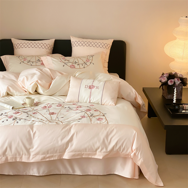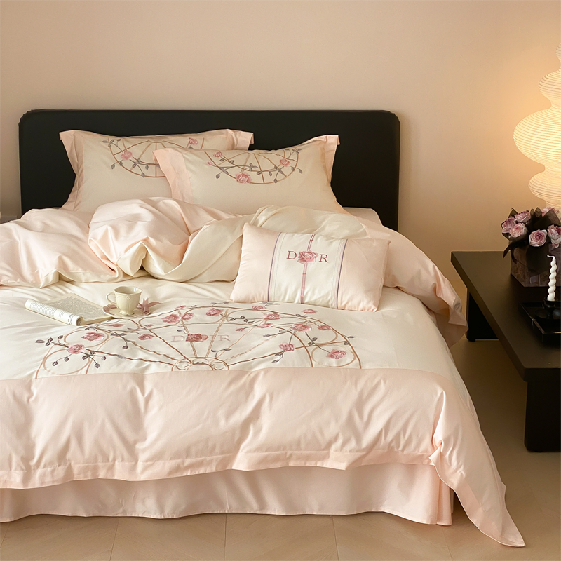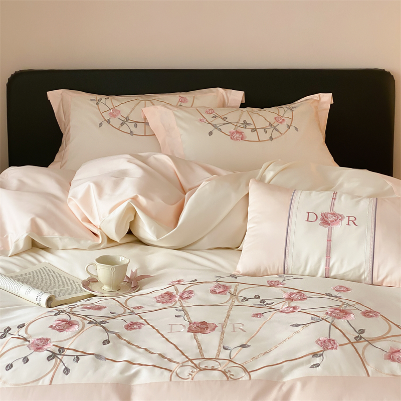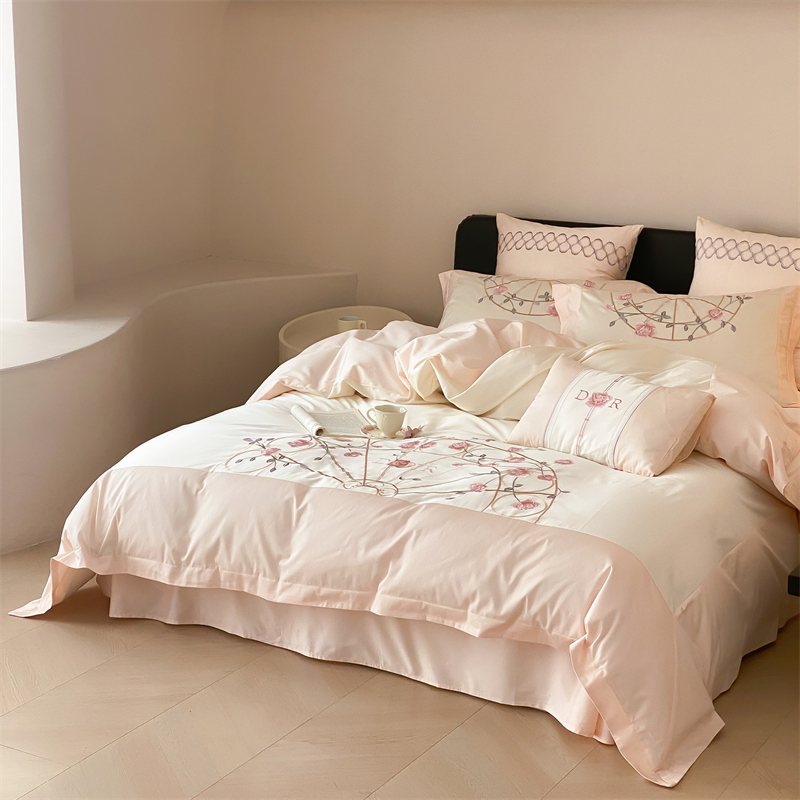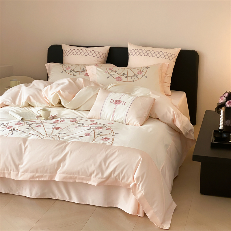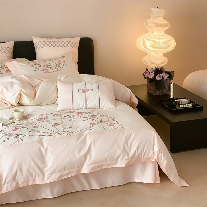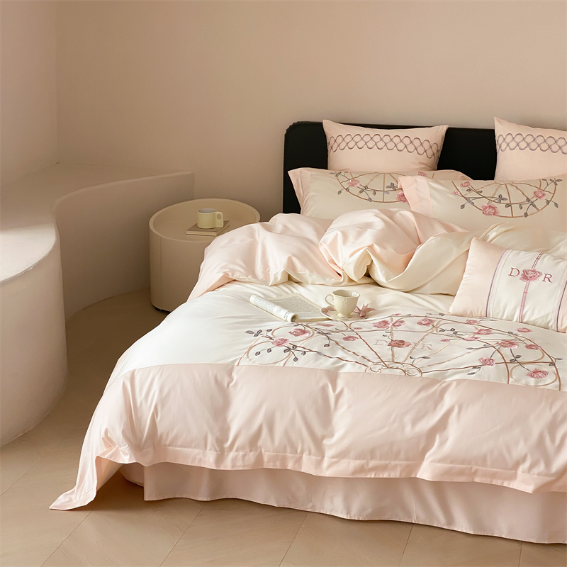 曼布缇 2025春夏新品100S澳棉长绒棉绣花四件套-香榭庄园 香榭庄园-粉