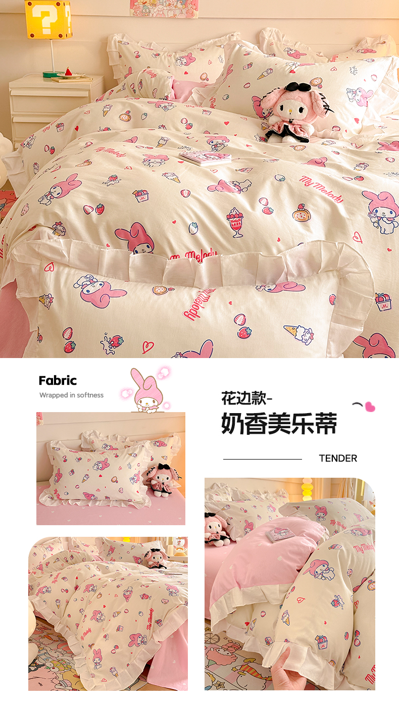 商品名称:沐辰 2024新款正版授权三丽鸥花边系列四件套 花边款-奶香美乐蒂