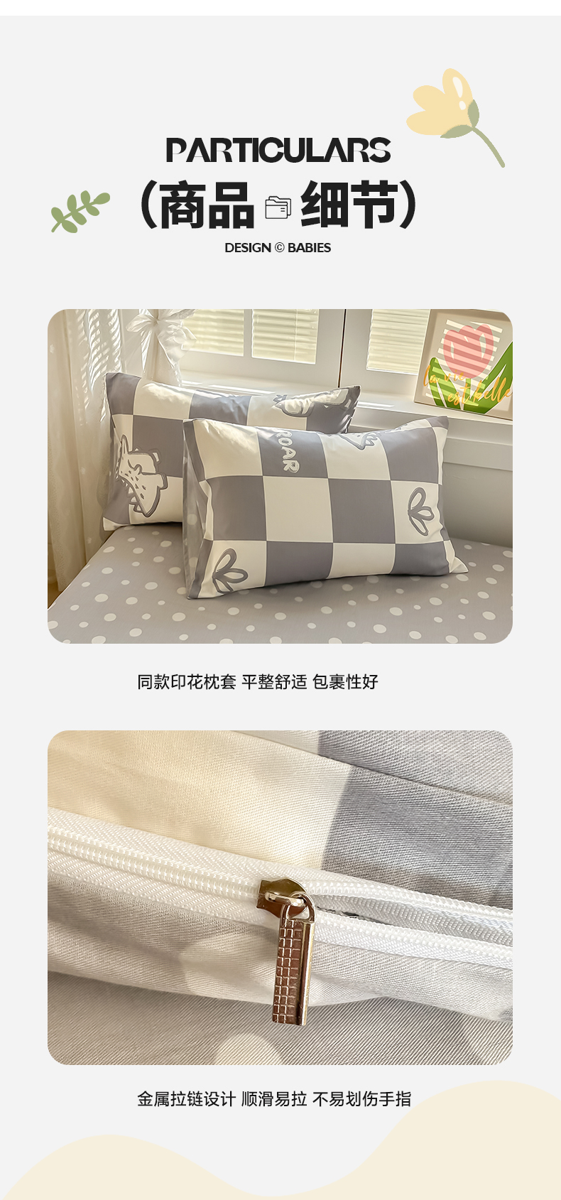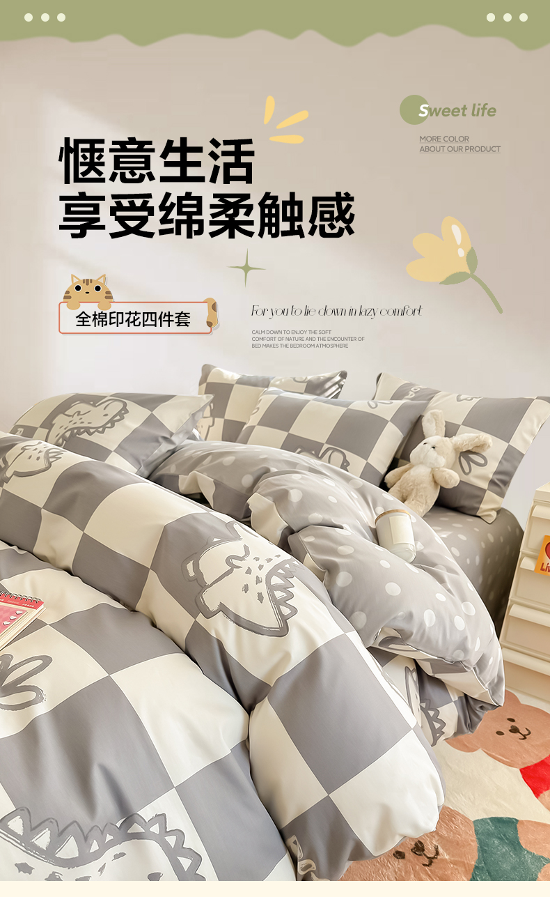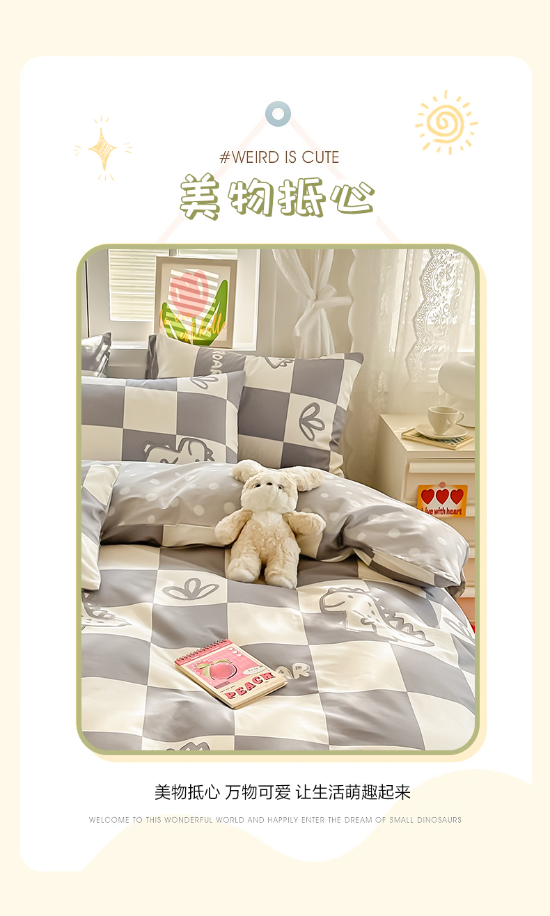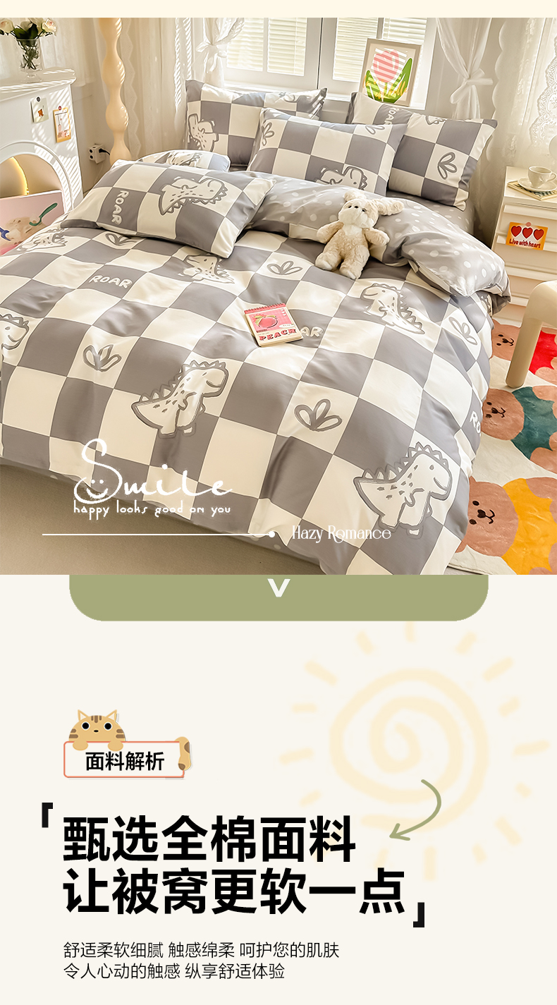 沐辰 2024新款13372全棉印花四件套(第二批) 格子恐龙