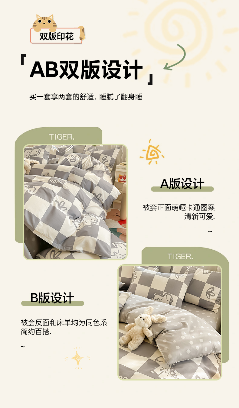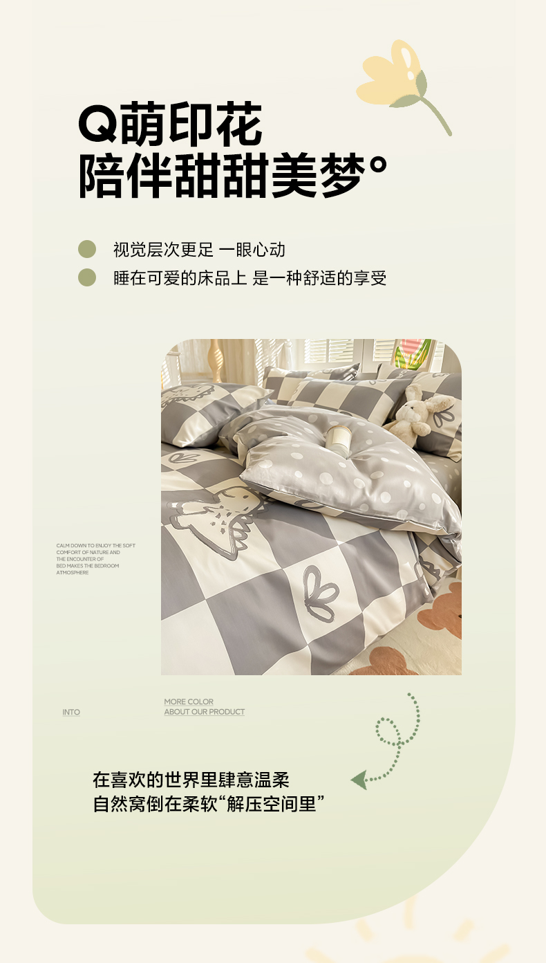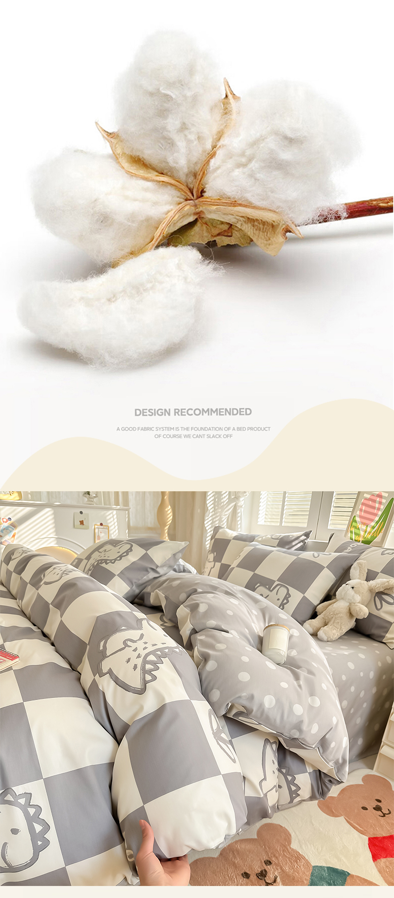 沐辰 2024新款13372全棉印花四件套(第二批) 格子恐龙