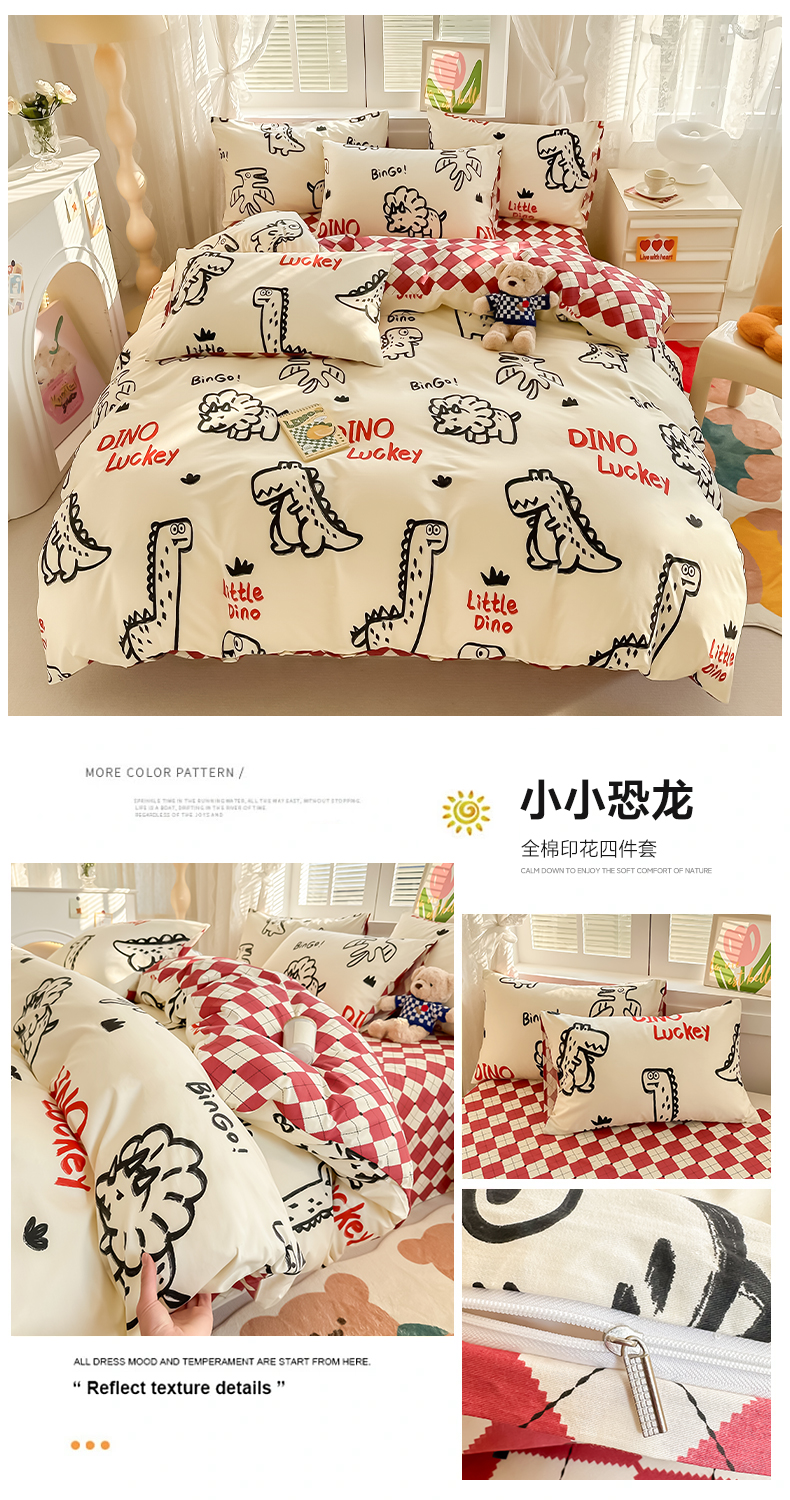 沐辰 2024新款13372全棉印花四件套(第二批) 小小恐龙