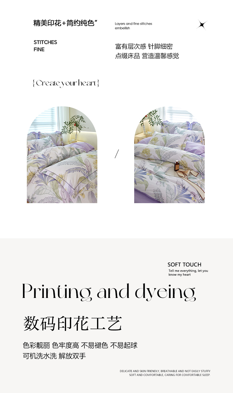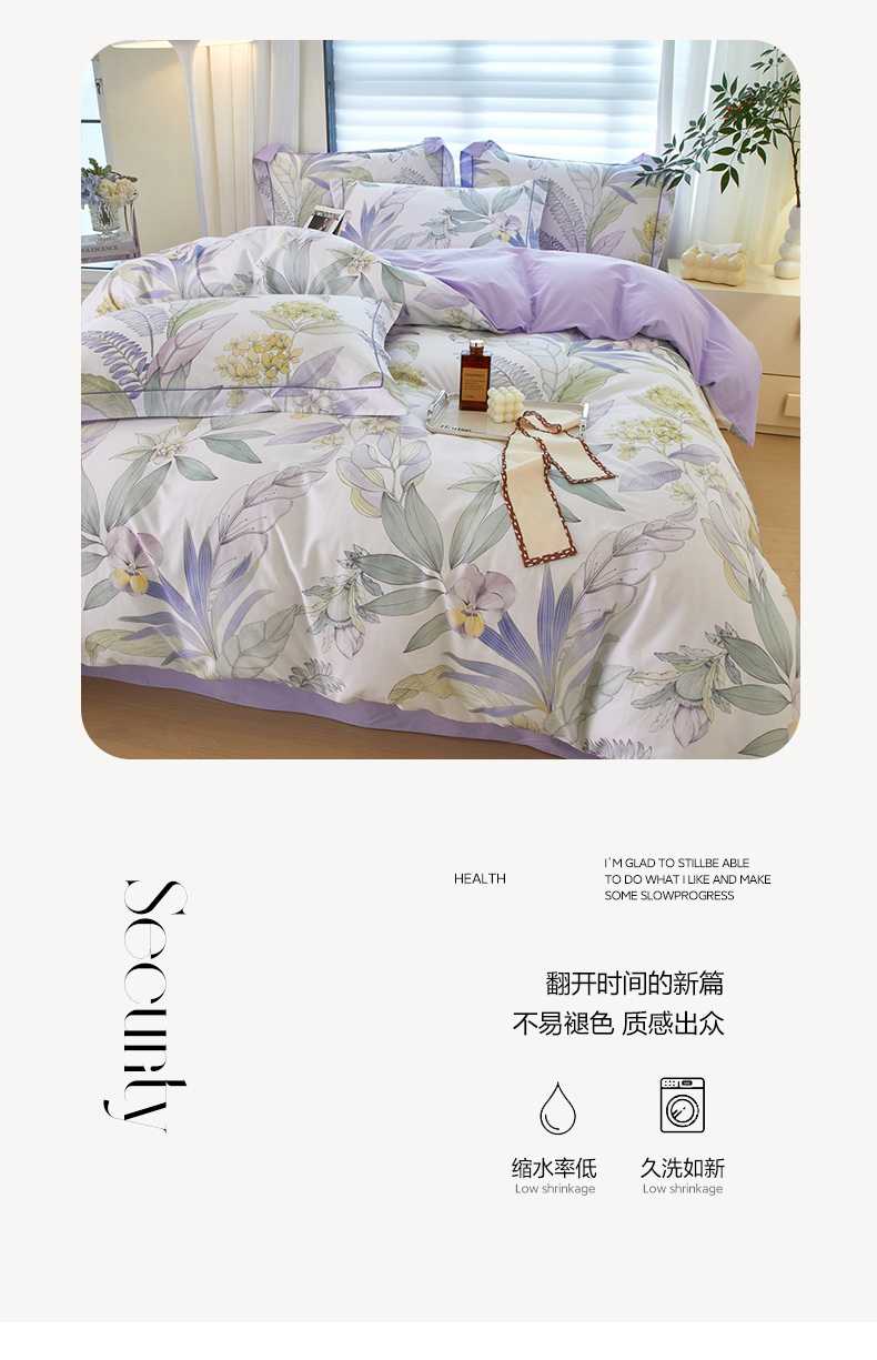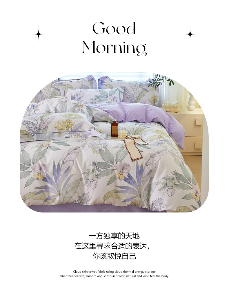 商品名称:启航家居 2025春夏全棉铂金棉数码印花四件套 花意飘香紫